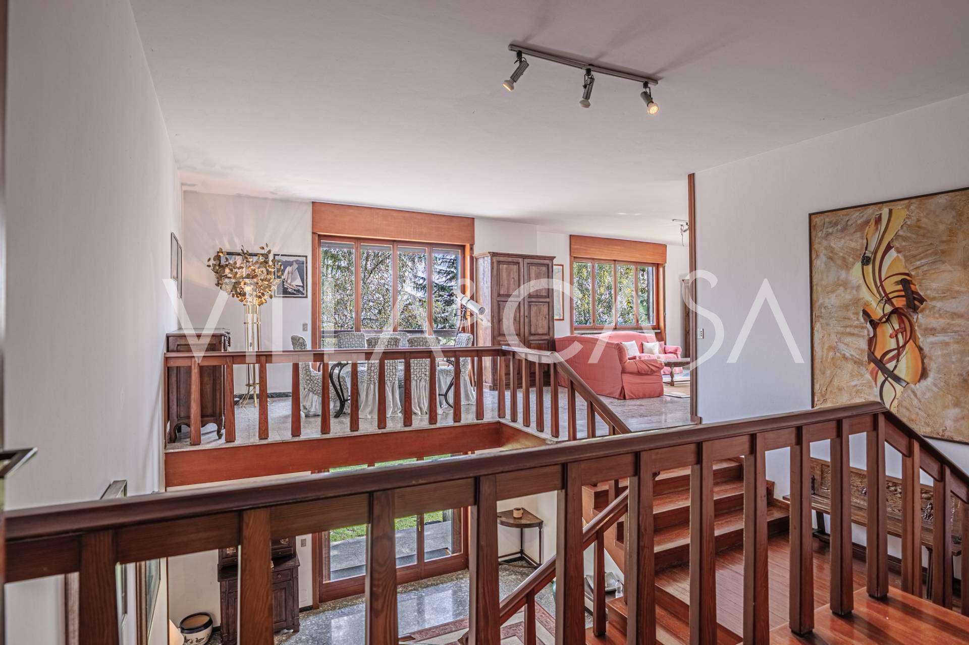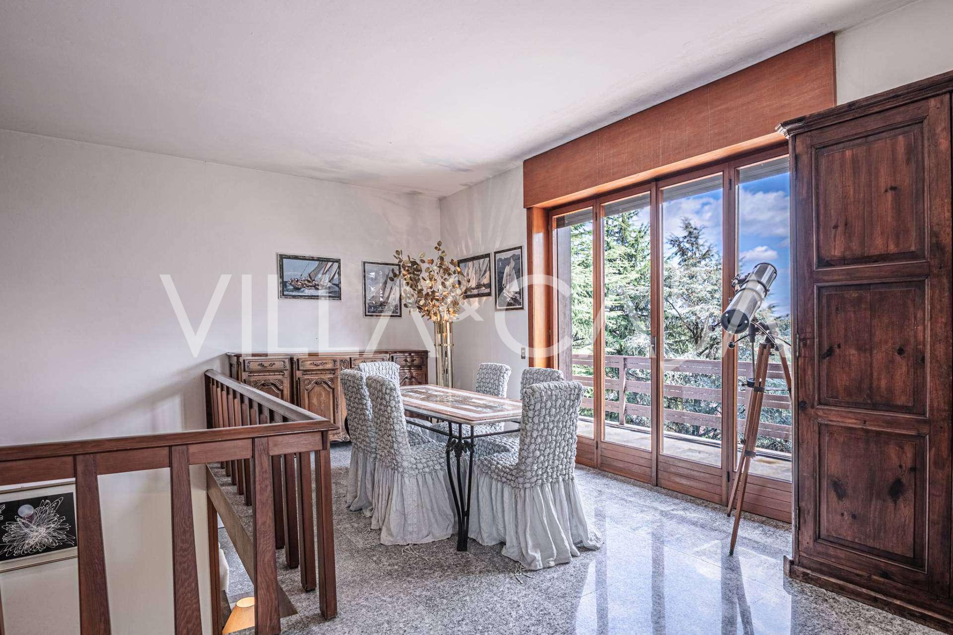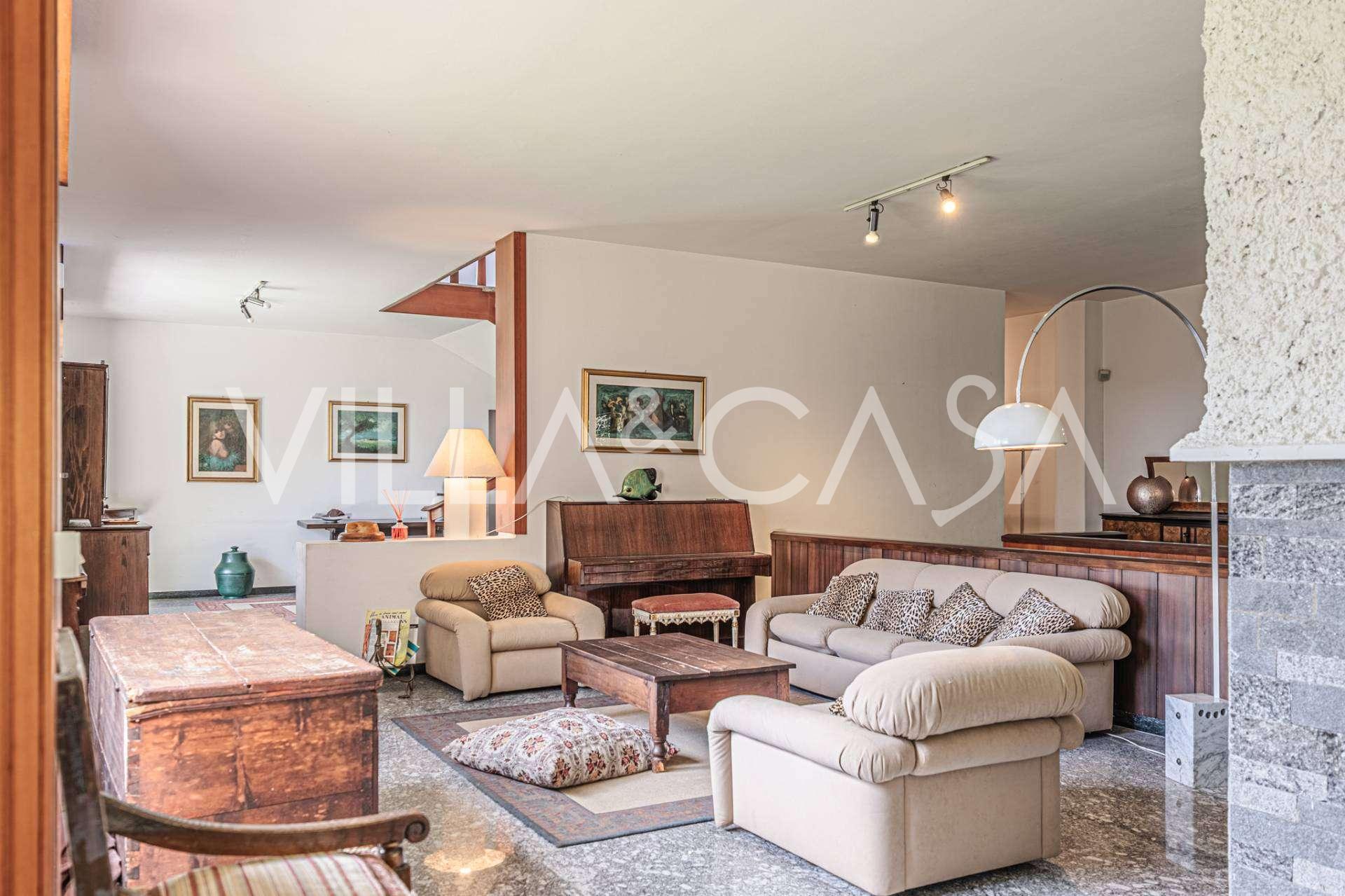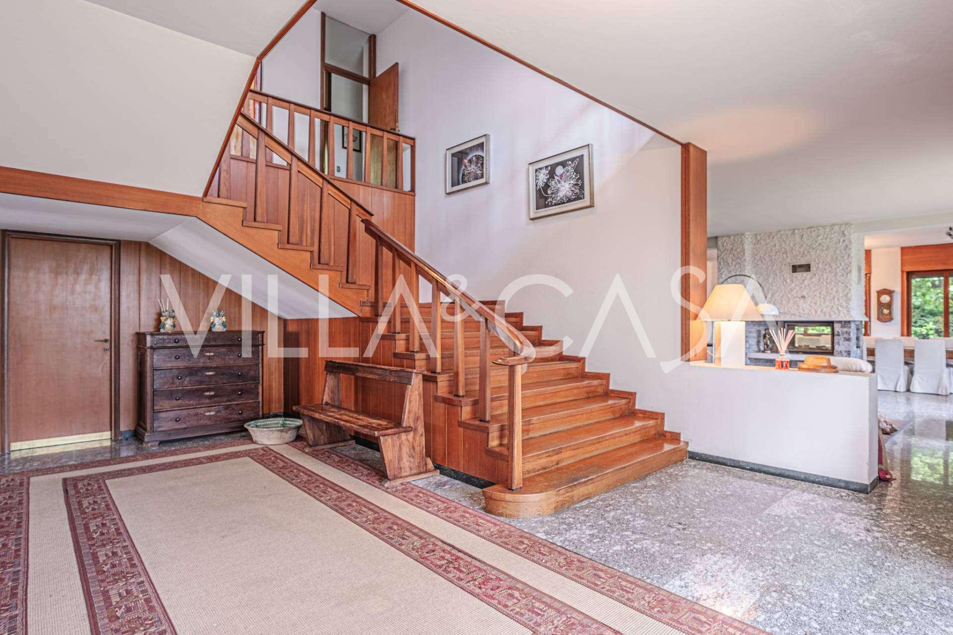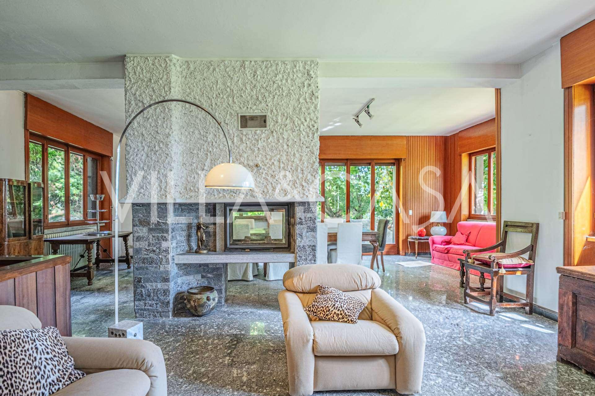 Construite au début des années 1960, la villa est nichée dans la verdure d'un parc privé d'environ 4 hectares, offrant une intimité et une tranquillité totales. En même temps, son emplacement est très pratique : la sortie d'autoroute se trouve à seulement un kilomètre, offrant un accès rapide à Milan et aux aéroports, tandis que la promenade pittoresque d'Arona et le lac lui-même ne sont qu'à 10 minutes en voiture.