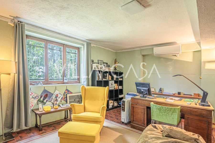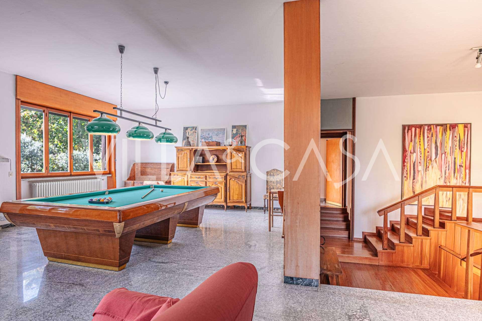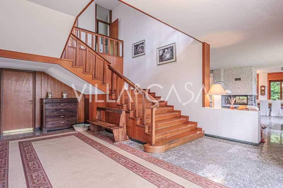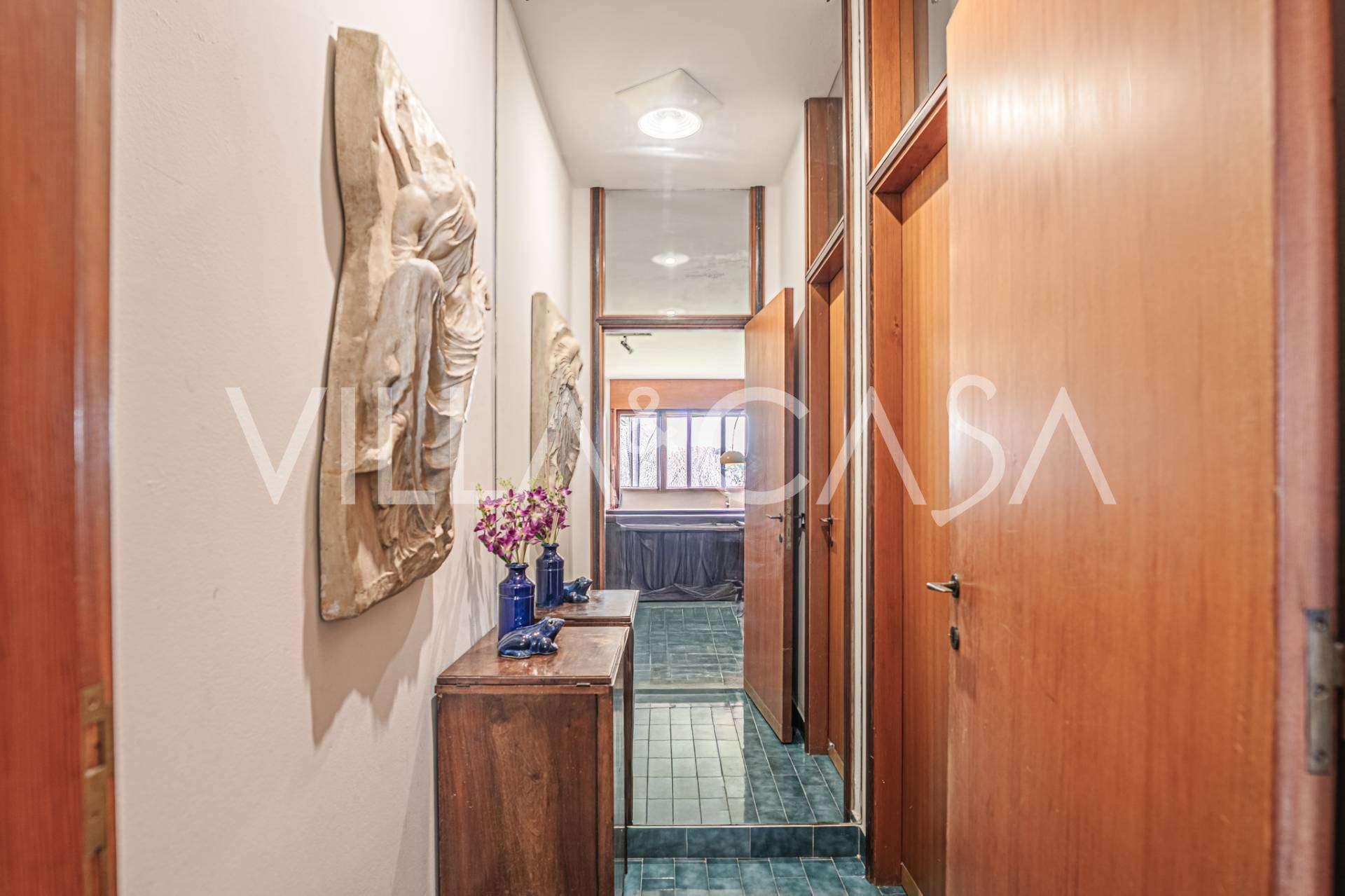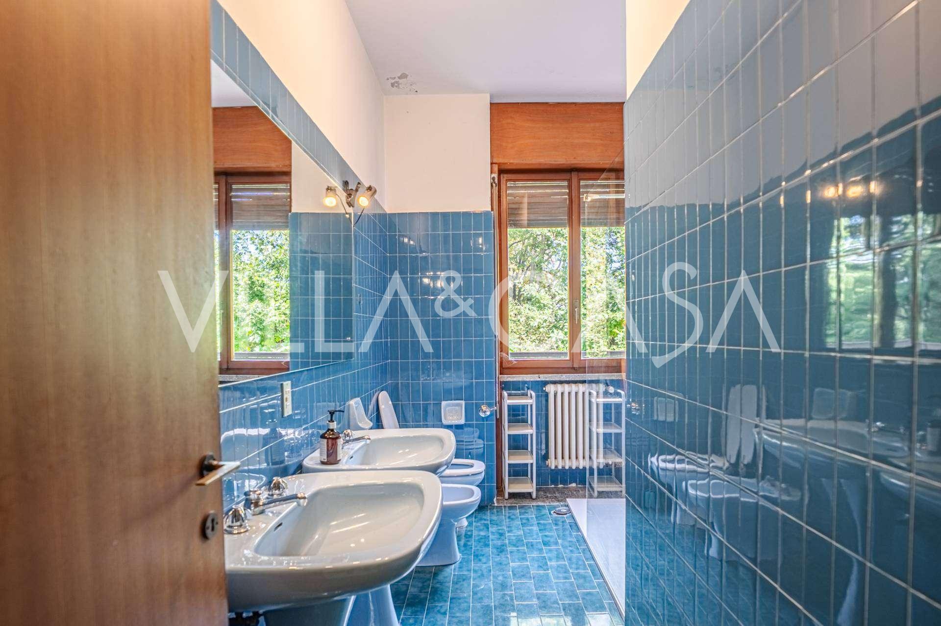 Construite au début des années 1960, la villa est nichée dans la verdure d'un parc privé d'environ 4 hectares, offrant une intimité et une tranquillité totales. En même temps, son emplacement est très pratique : la sortie d'autoroute se trouve à seulement un kilomètre, offrant un accès rapide à Milan et aux aéroports, tandis que la promenade pittoresque d'Arona et le lac lui-même ne sont qu'à 10 minutes en voiture.