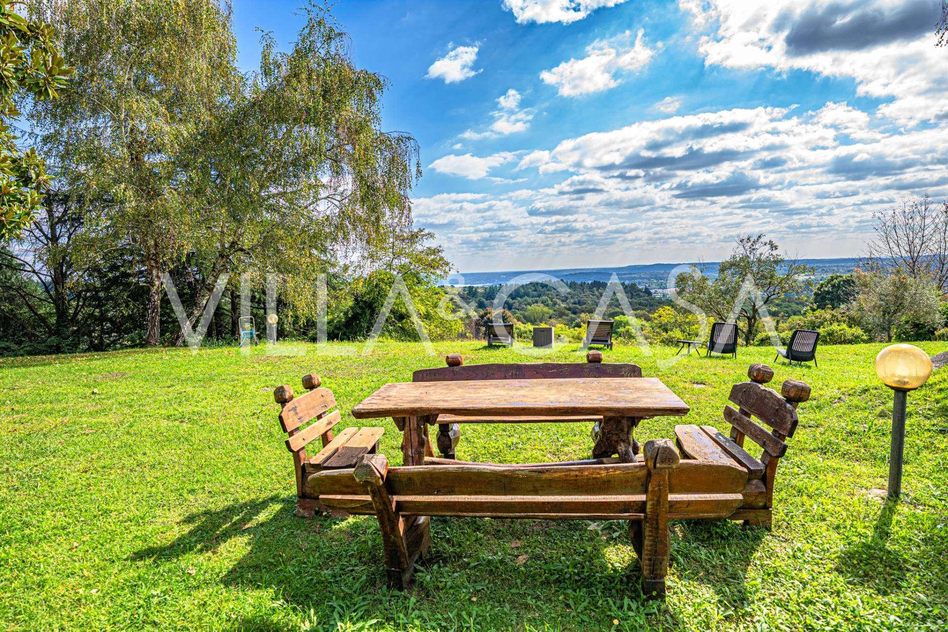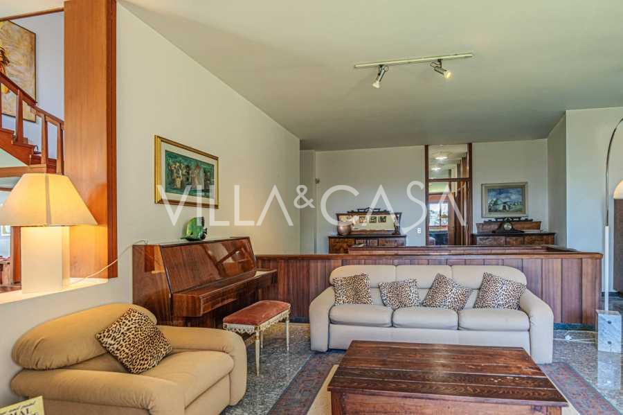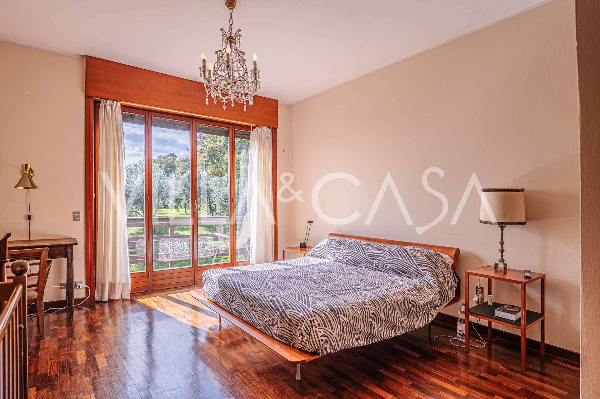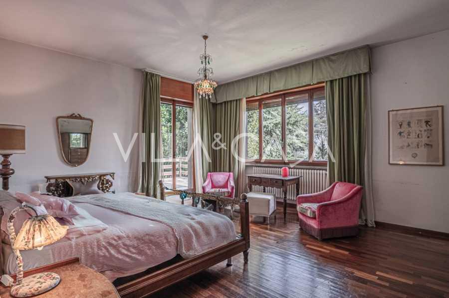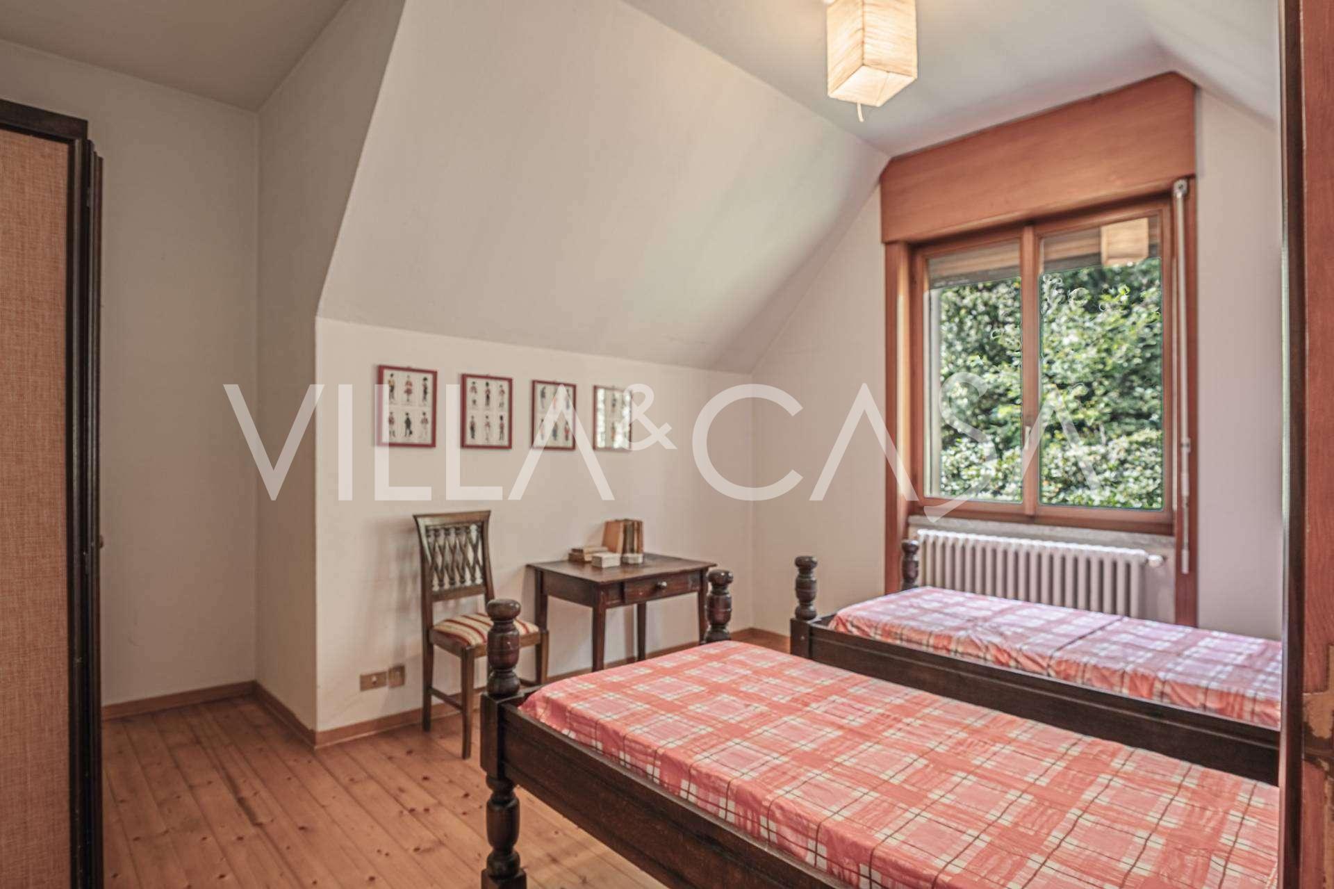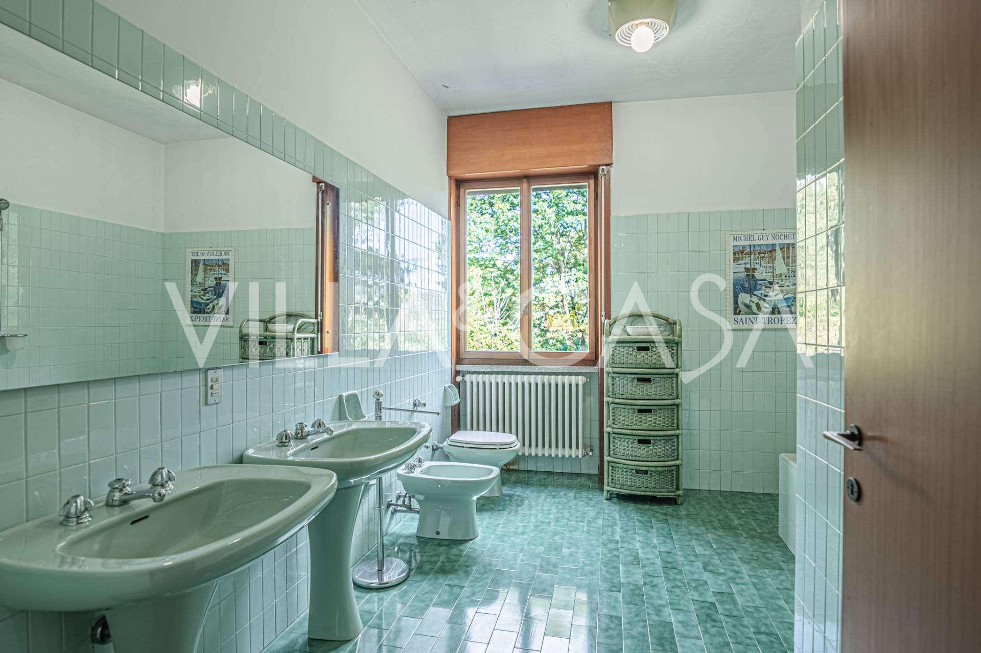 Construite au début des années 1960, la villa est nichée dans la verdure d'un parc privé d'environ 4 hectares, offrant une intimité et une tranquillité totales. En même temps, son emplacement est très pratique : la sortie d'autoroute se trouve à seulement un kilomètre, offrant un accès rapide à Milan et aux aéroports, tandis que la promenade pittoresque d'Arona et le lac lui-même ne sont qu'à 10 minutes en voiture.