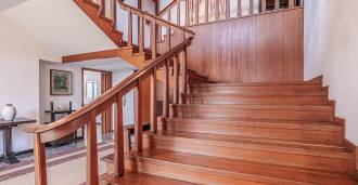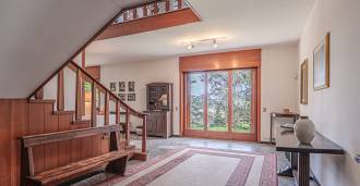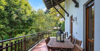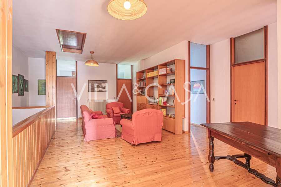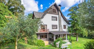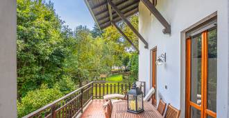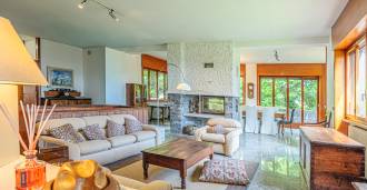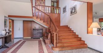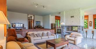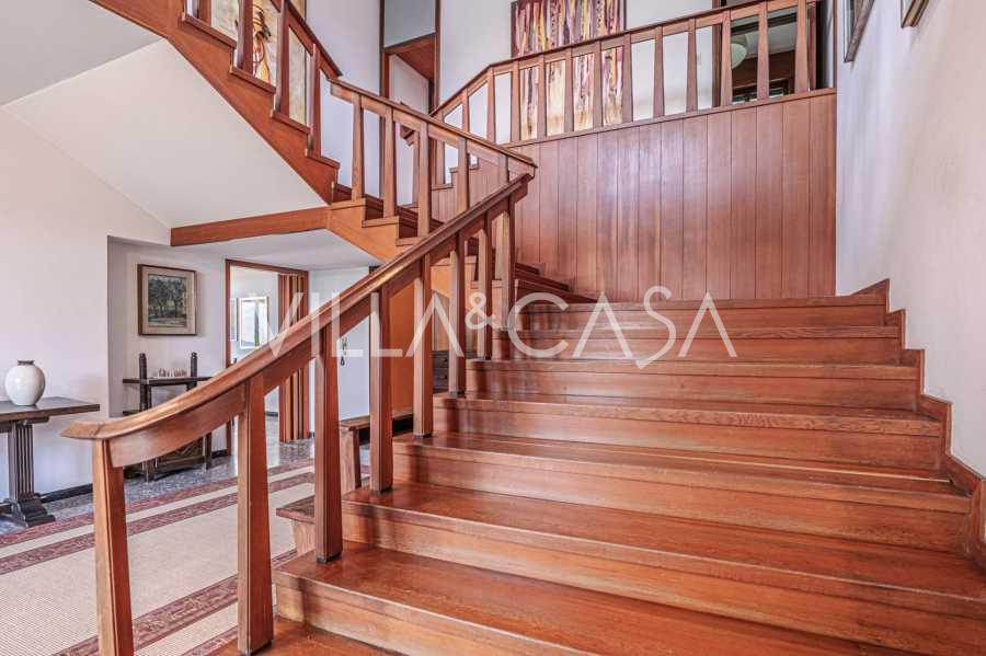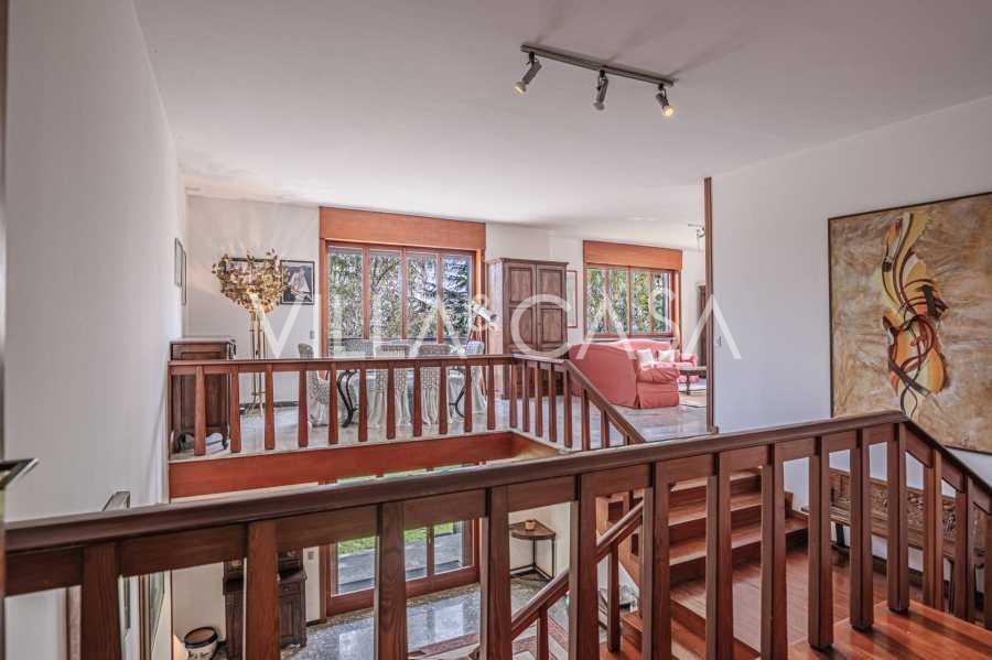 La villa est en excellent état, construite avec des matériaux de haute qualité et dispose d'intérieurs spacieux, lumineux et harmonieux. Un impressionnant escalier en bois, digne des résidences hollywoodiennes, accueille les invités dans le grand hall. Les magnifiques salons et la salle à manger avec leurs fenêtres panoramiques offrent une vue sur les paysages du parc privé, créant une atmosphère de confort raffiné et de calme noble.