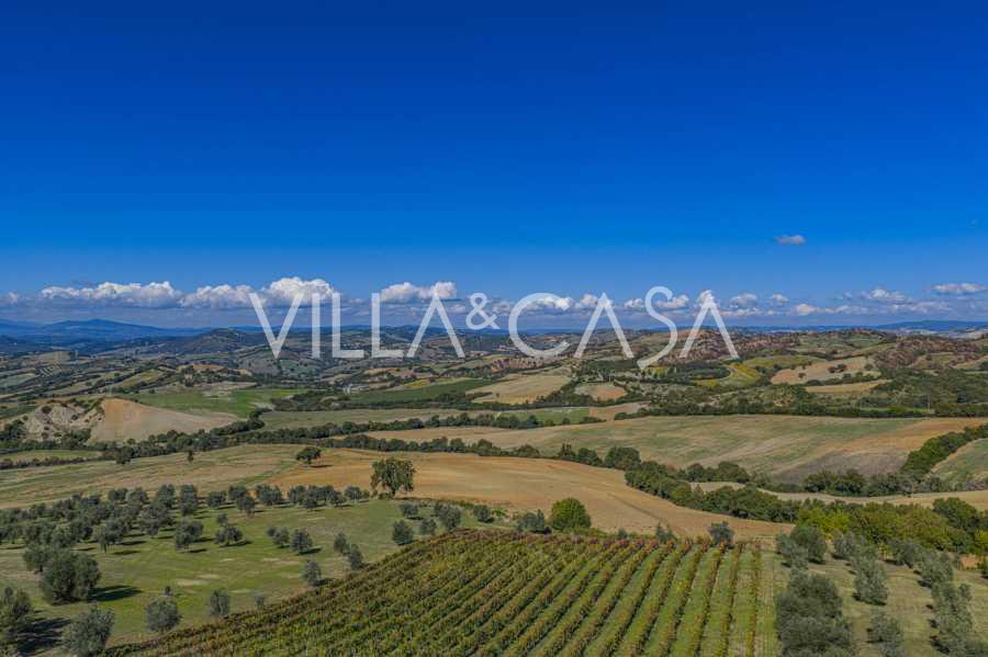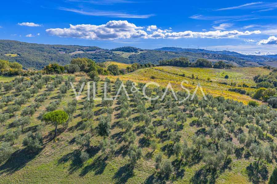 La surface bâtie dépasse 1000 m², tandis que le domaine s'étend sur plus de 2 hectares de terrain entretenu. Un magnifique parc entoure la maison, enveloppant l'air frais du matin; parmi les cyprès et les haies parfumées se cache une piscine panoramique avec un solarium spacieux, et sur le versant est se trouve une oliveraie productive d'environ 1 hectare avec plus de deux cents arbres produisant de l'huile de première qualité.