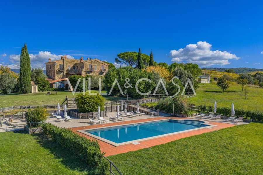 Au cœur de la lumineuse Maremme toscane, parmi les douces collines entre Scansano et Roccalbegna, s'élève une magnifique villa historique du XVIIe siècle, alliant l'élégance italienne authentique au confort moderne. Ce domaine rural raffiné, soigneusement restauré dans le respect de son esprit historique, constitue aujourd'hui une résidence élégante, idéale pour une habitation privée ou pour gérer un hôtel boutique.