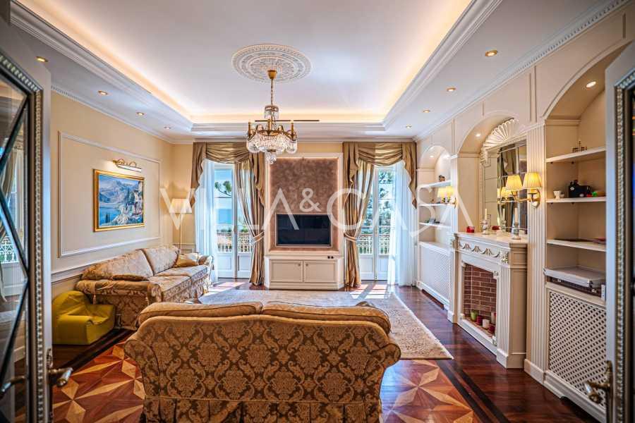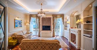 Chaque détail de la décoration est une œuvre d'art : murs en bois naturel, nubuck et cuir; parquet de haute qualité; enduit vénitien; portes et mobilier uniques de Bucalossi; design d'éclairage sur mesure — lustres exclusifs faits à la main; peintures raffinées créées sur commande spécialement pour cet espace, reflétant le charme d'Ospedaletti. Les fenêtres et les groupes de balcons sont fabriqués sur projet spécial pour un confort maximal et une isolation thermique.