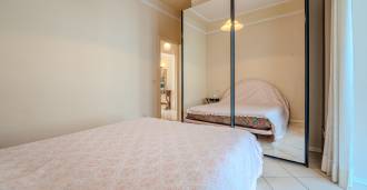 L'appartement comprend un salon avec une vue panoramique sur la mer et un accès au balcon, trois chambres, dont une avec accès au balcon, deux salles de bains et un hall d'entrée.