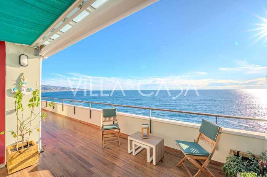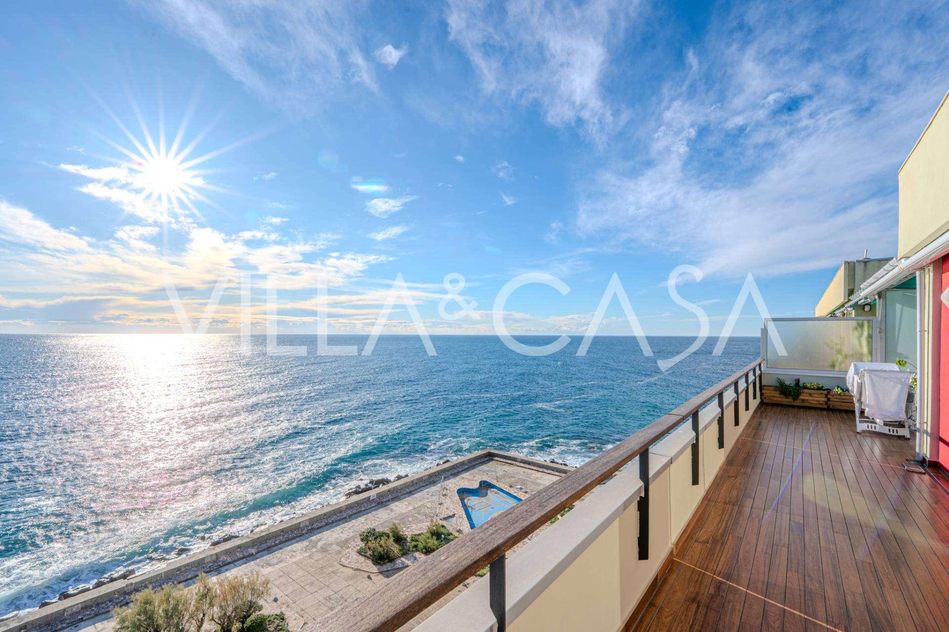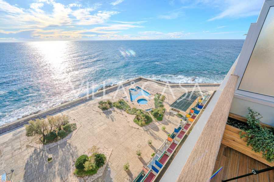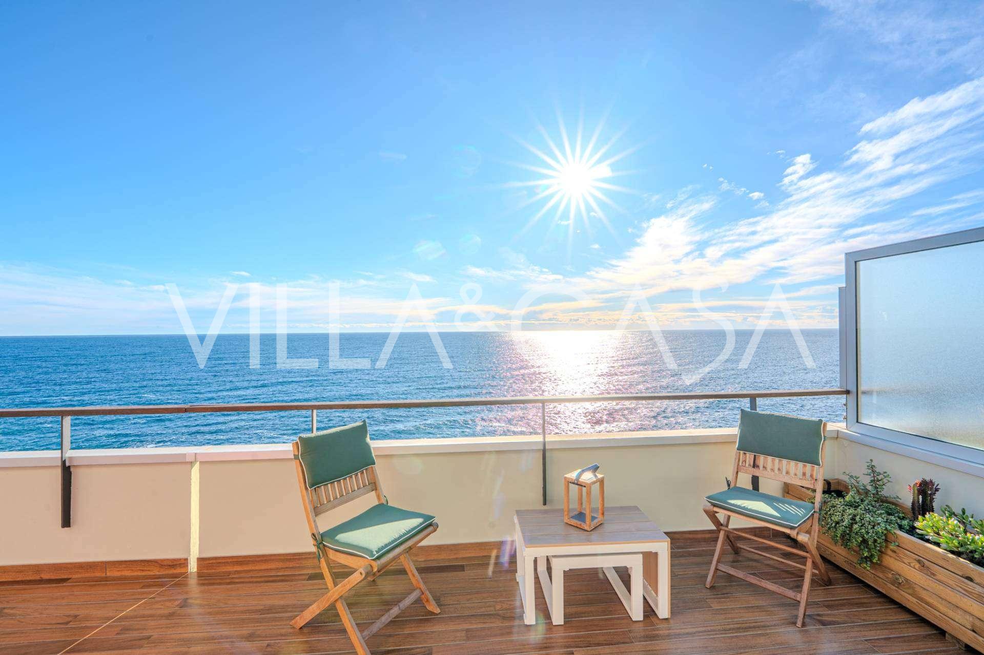Un penthouse avec une grande terrasse de 143 m² (123 m² habitables + garage de 20 m²) est à vendre en première ligne face à la mer. Ce penthouse bien entretenu et entièrement rénové en 2023 est situé au 5ème étage d'un immeuble avec concierge. L'appartement est orienté sud-est et dispose d'une terrasse spacieuse, créant une atmosphère lumineuse et accueillante.