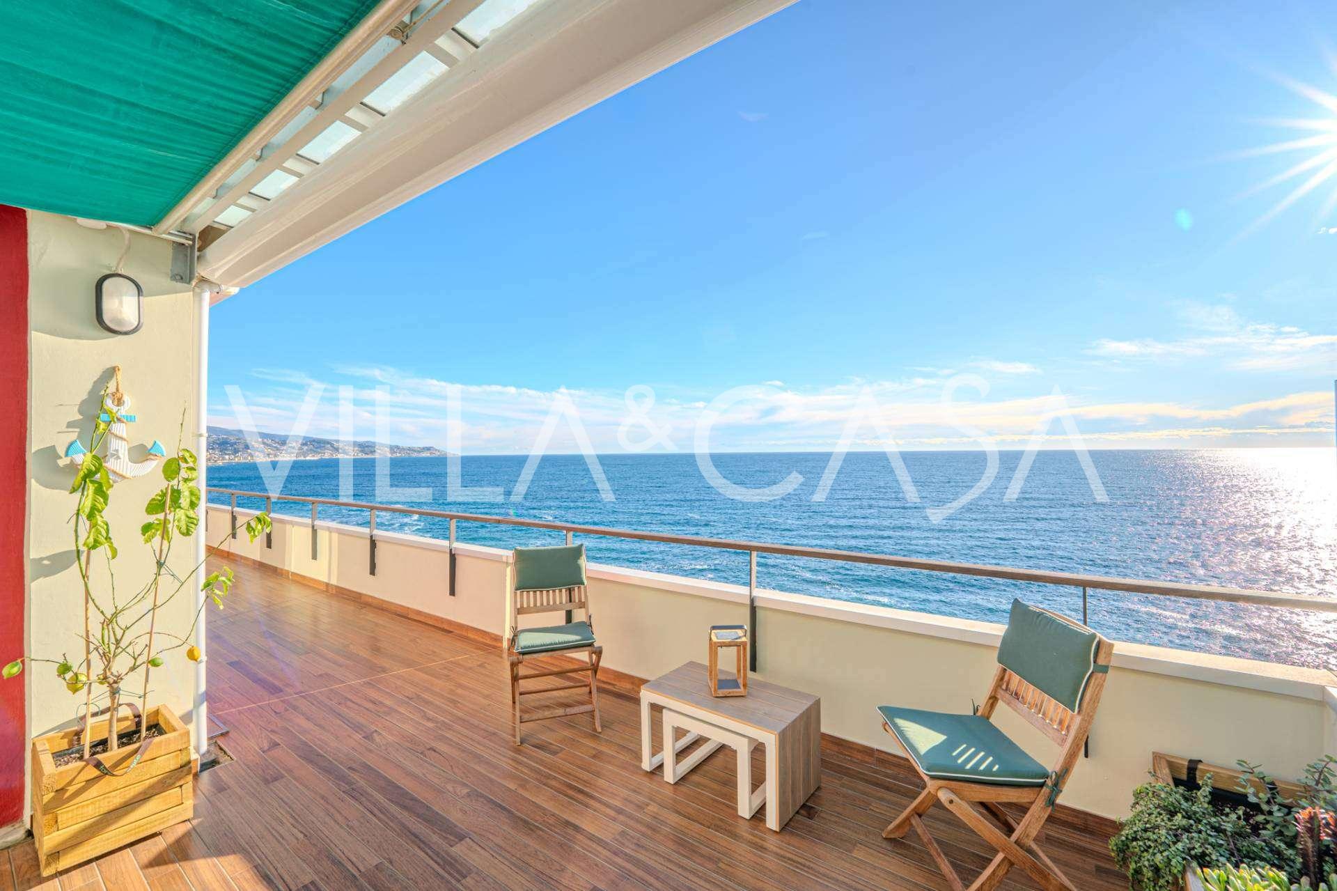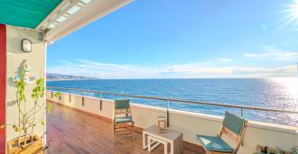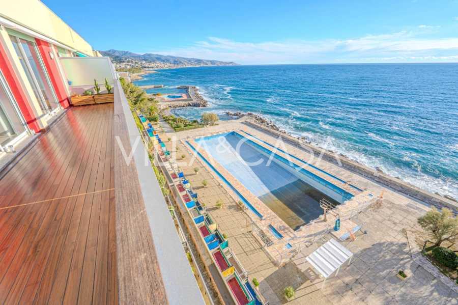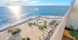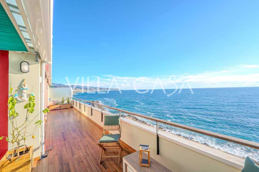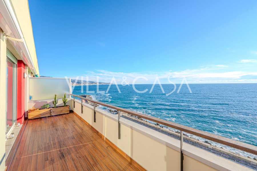 Un penthouse avec une grande terrasse de 143 m² (123 m² habitables + garage de 20 m²) est à vendre en première ligne face à la mer. Ce penthouse bien entretenu et entièrement rénové en 2023 est situé au 5ème étage d'un immeuble avec concierge. L'appartement est orienté sud-est et dispose d'une terrasse spacieuse, créant une atmosphère lumineuse et accueillante.