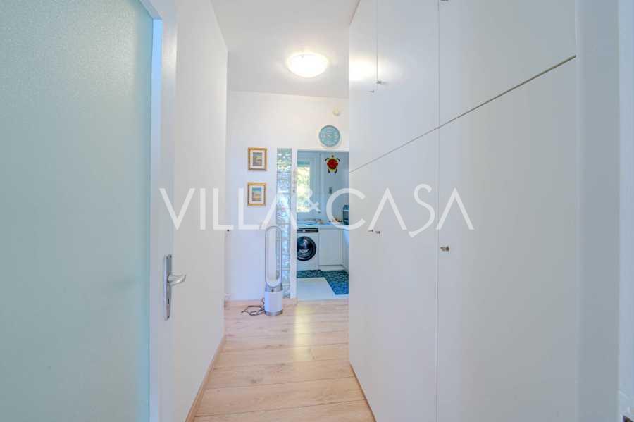 La disposition comprend un salon, un bureau, une chambre principale, une deuxième chambre ou chambre d'enfant, une cuisine-salle à manger, deux salles de bains avec fenêtres, une entrée et un couloir. Chauffage autonome, possibilité d'installation de climatisation, garage-box de 20 m² avec une hauteur sous plafond de 3,50 m et possibilité de mezzanine, grande terrasse pour se détendre en plein air. Pas de cave, mais le garage peut être utilisé pour le stockage. Les charges communes s'élèvent à 2000 € par an.