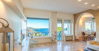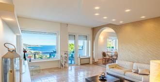 Un appartement luxueux de 161 m² avec une vue imprenable sur la mer est à vendre. L'appartement est situé au rez-de-chaussée d'une élégante villa privée, dotée d'une piscine et d'une place de parking pratique.