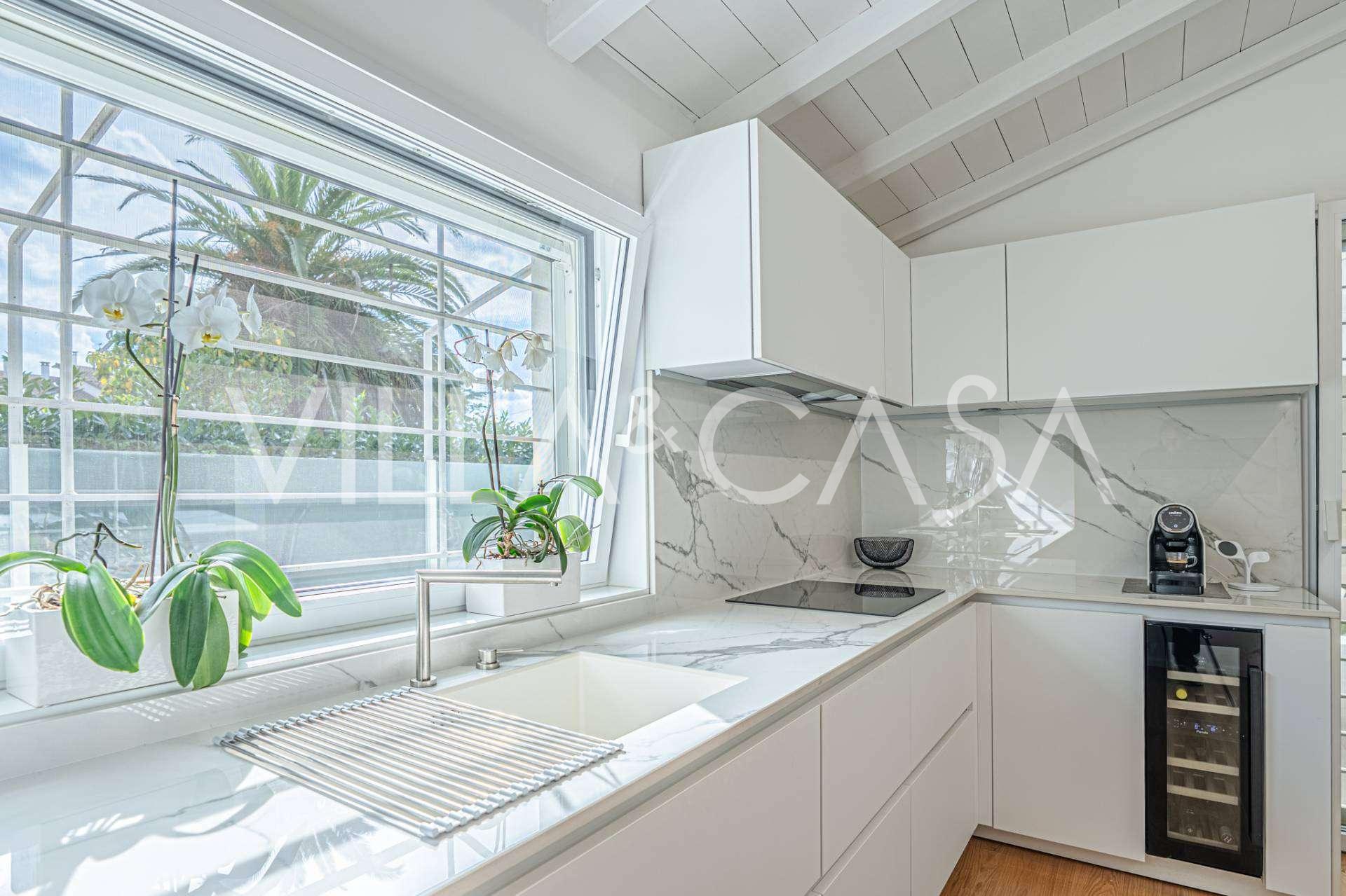 Au premier niveau, on trouve un salon spacieux et lumineux, une cuisine indépendante avec accès à un jardin privé, deux chambres confortables, deux salles de bains modernes et un débarras. Le niveau supérieur abrite un grenier élégant, adapté pour un bureau, une zone de détente ou une chambre supplémentaire.