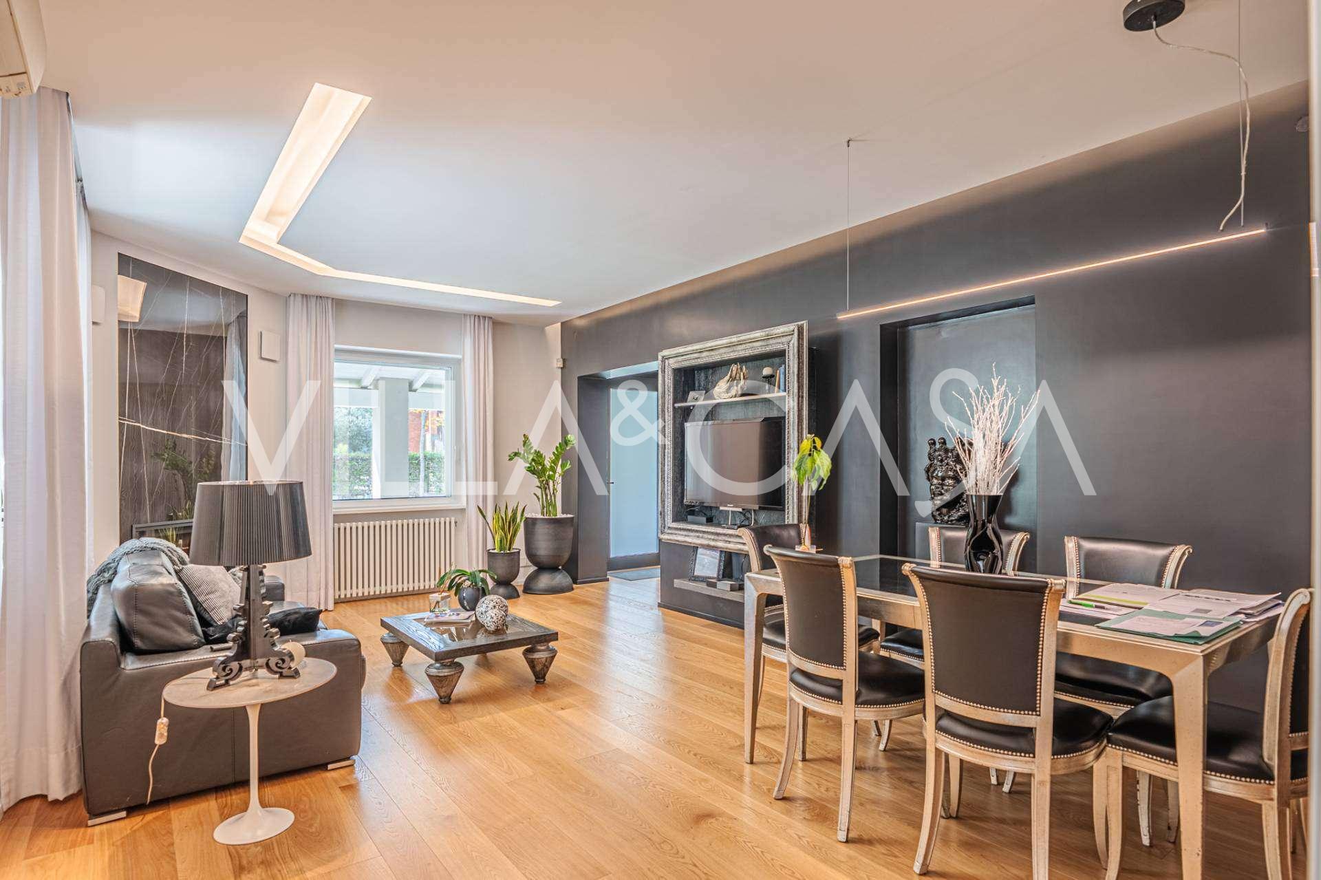 La villa est construite avec des matériaux de haute qualité, équipée d'un système de chauffage autonome, de climatisation et de solutions techniques modernes. Un jardin bien entretenu assure confort et intimité, tandis qu'un parking pour deux voitures ajoute au confort.