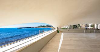La zone de vie comprend un salon lumineux avec vue sur la mer et une cuisine moderne, parfaitement intégrée comme espace fonctionnel et esthétique. La zone nuit se compose de deux chambres, trois salles de bains et un bureau séparé, idéal pour travailler ou lire avec vue sur le paysage côtier.