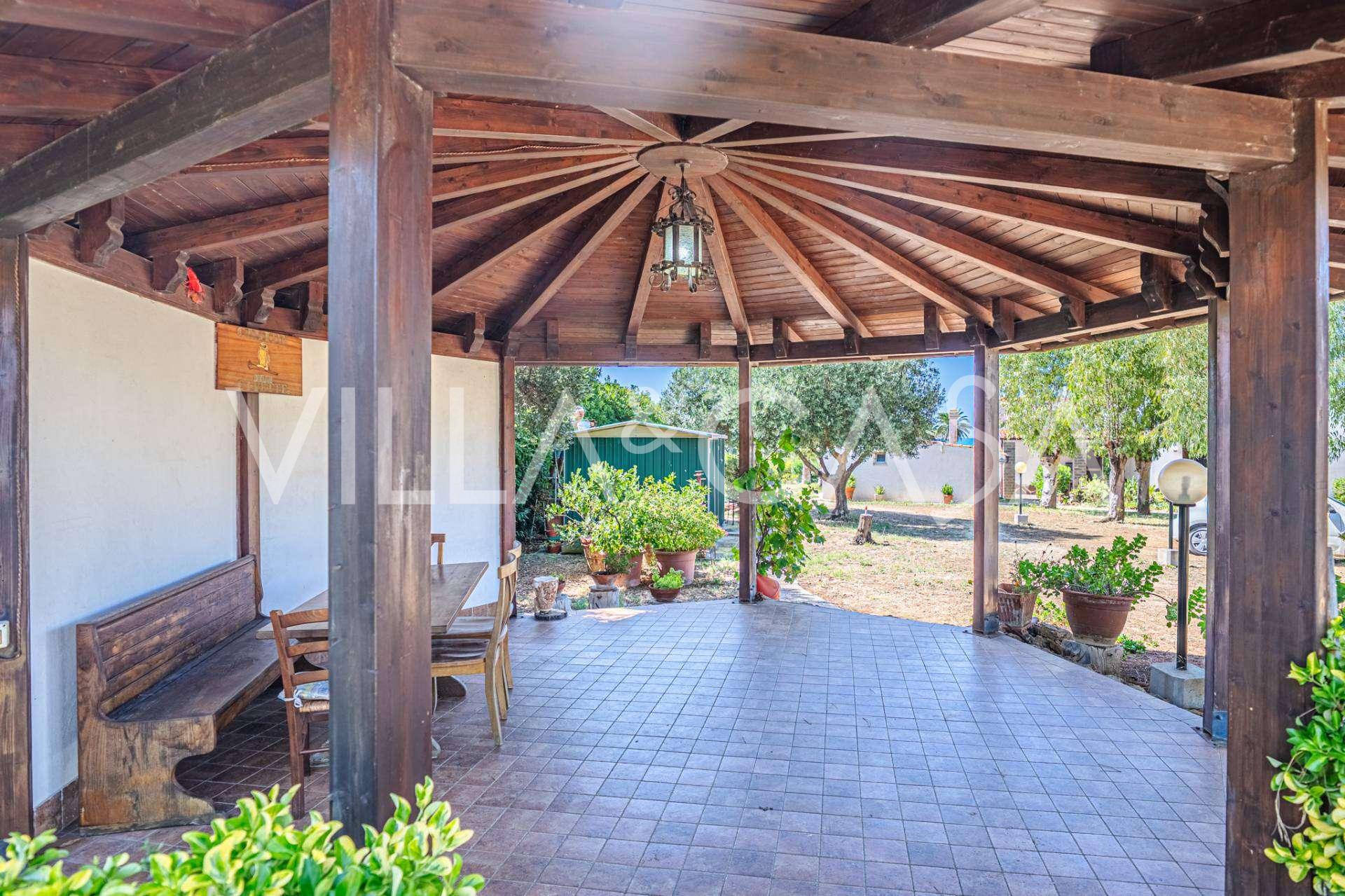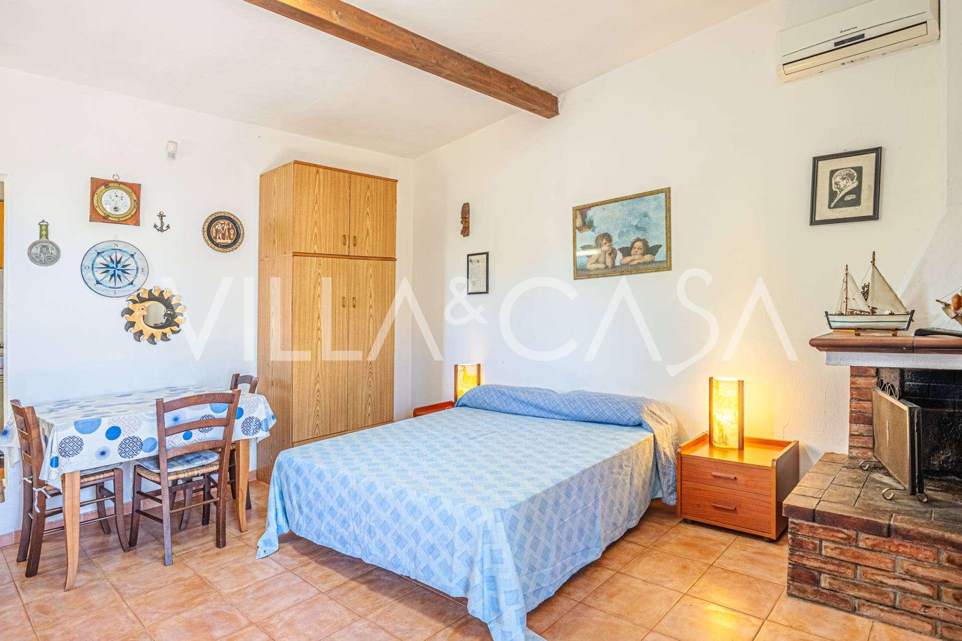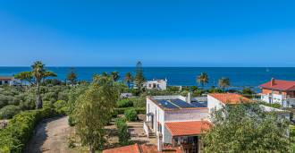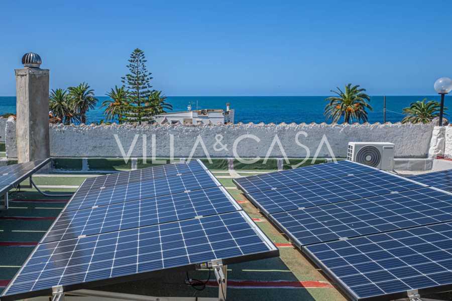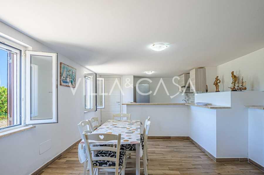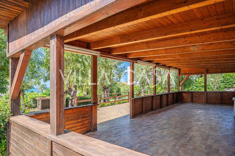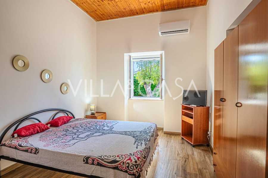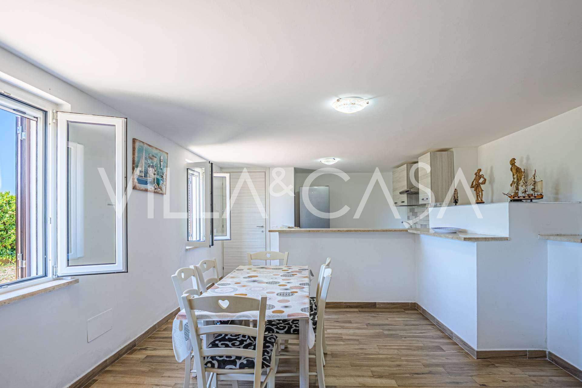 La résidence est complétée par des bâtiments annexes : un bâtiment séparé avec salle de bain, kitchenette, four à bois, buanderie et débarras, ainsi qu'un appartement indépendant d'environ 24 m² avec sa propre chambre, salle de bain et kitchenette. Il est orné d'une pergola en bois d'environ 100 m² avec un auvent, offrant une vue pittoresque sur la mer. L'appartement se distingue par son intimité et son excellente exposition au soleil, dispose de deux entrées avec portails automatiques, est en parfait état, entièrement meublé et équipé de climatiseurs et d'un système photovoltaïque.