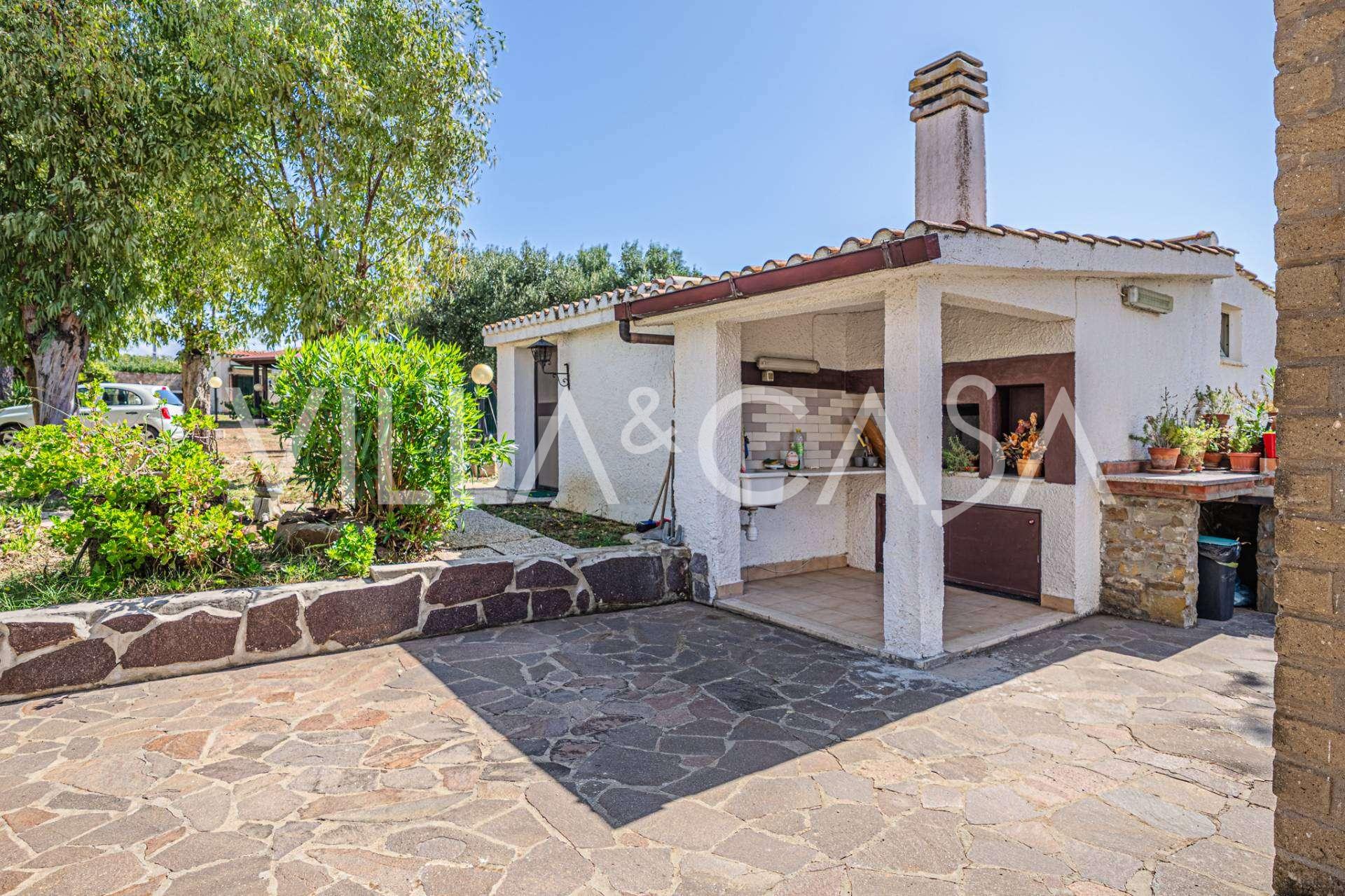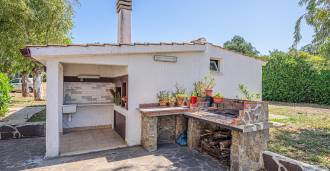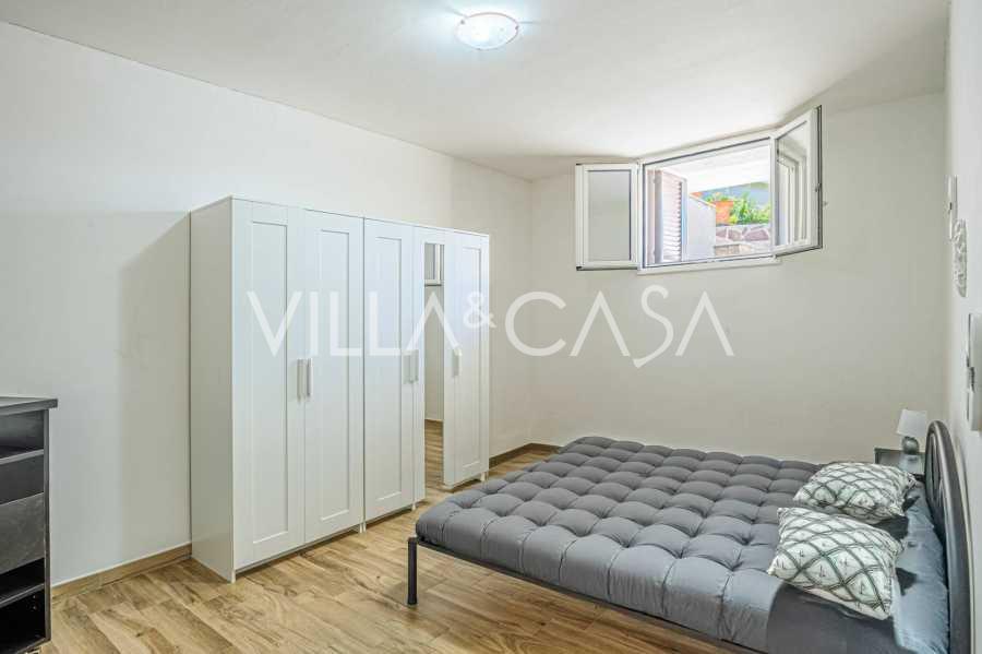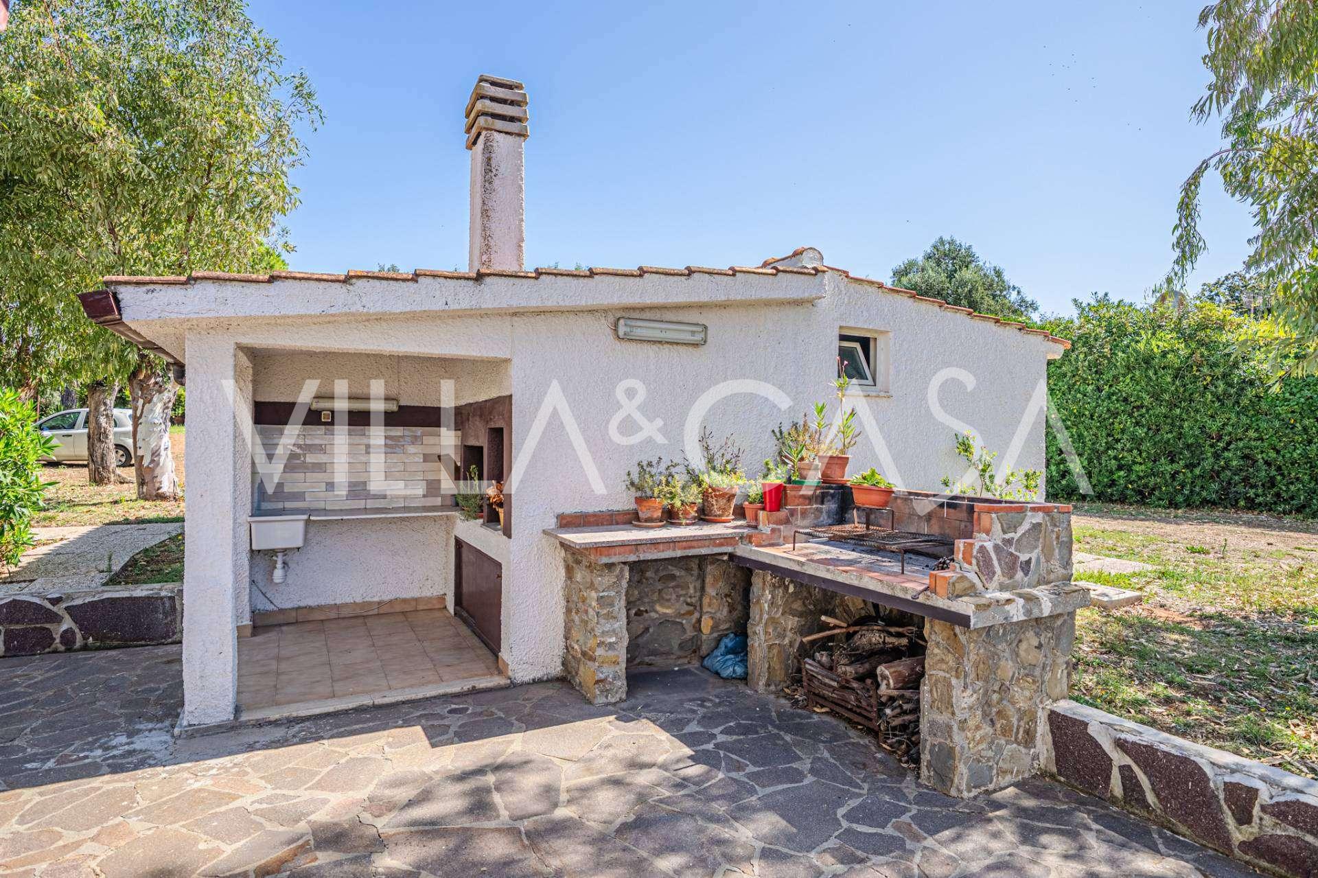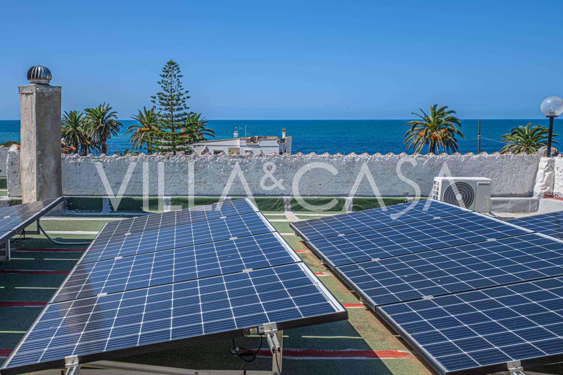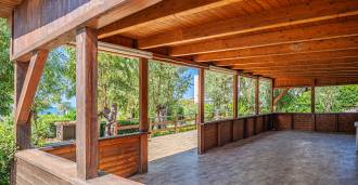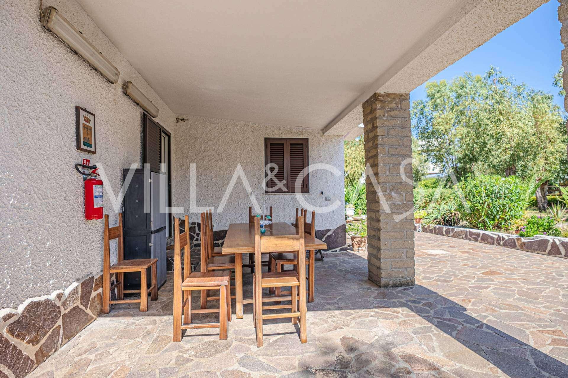 La résidence est complétée par des bâtiments annexes : un bâtiment séparé avec salle de bain, kitchenette, four à bois, buanderie et débarras, ainsi qu'un appartement indépendant d'environ 24 m² avec sa propre chambre, salle de bain et kitchenette. Il est orné d'une pergola en bois d'environ 100 m² avec un auvent, offrant une vue pittoresque sur la mer. L'appartement se distingue par son intimité et son excellente exposition au soleil, dispose de deux entrées avec portails automatiques, est en parfait état, entièrement meublé et équipé de climatiseurs et d'un système photovoltaïque.