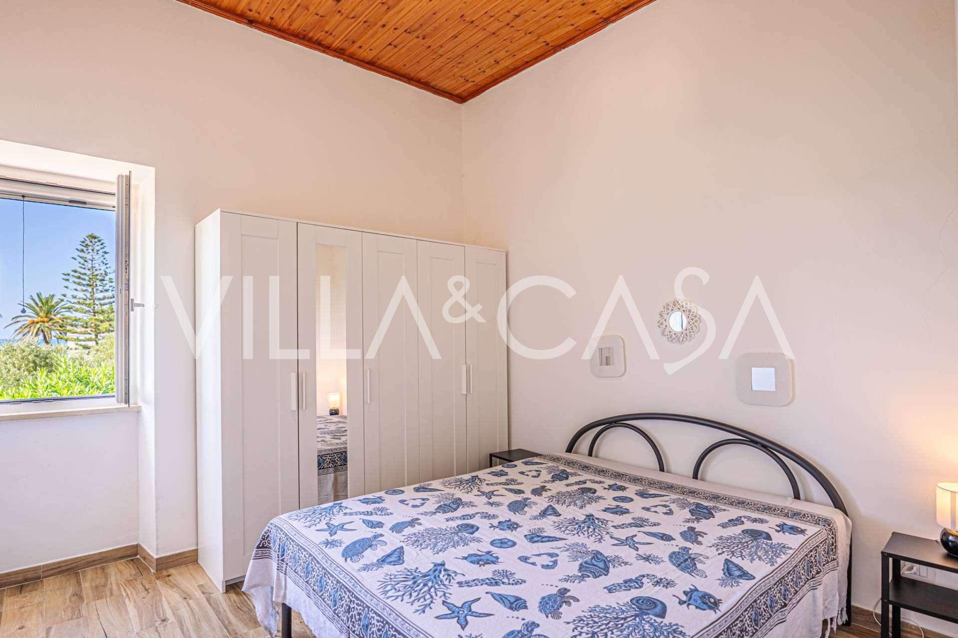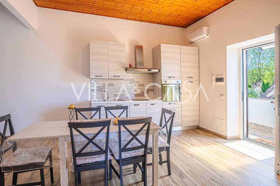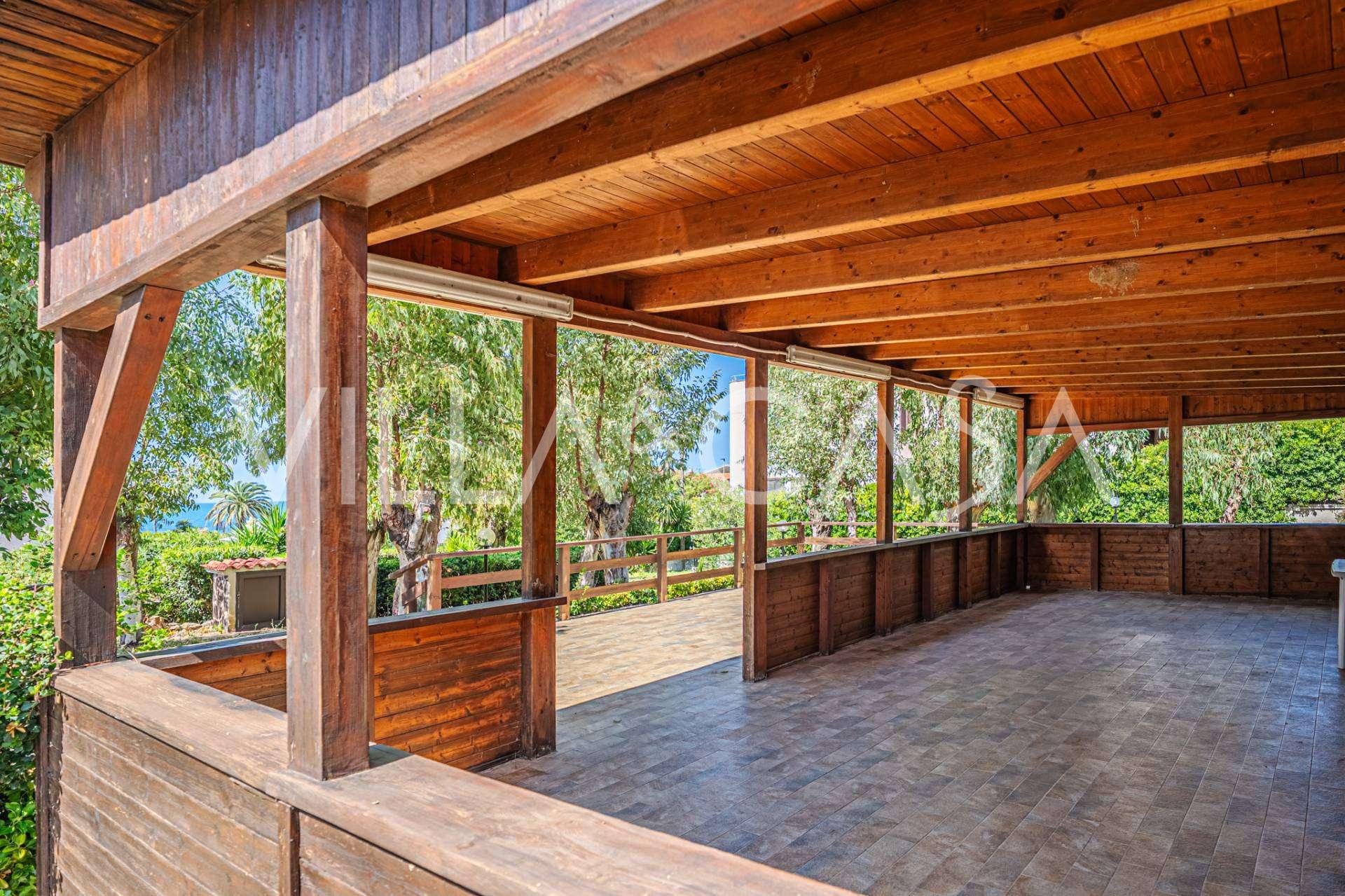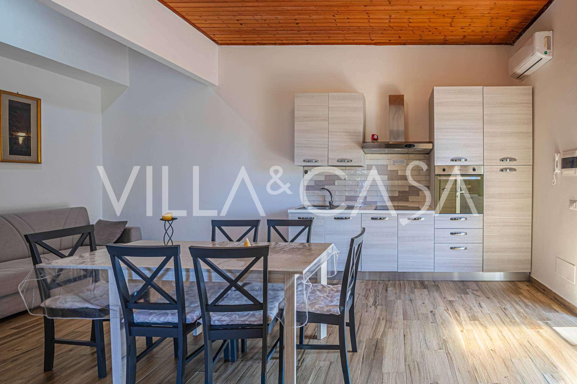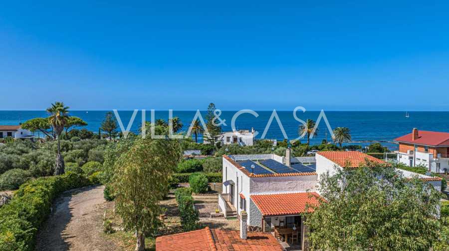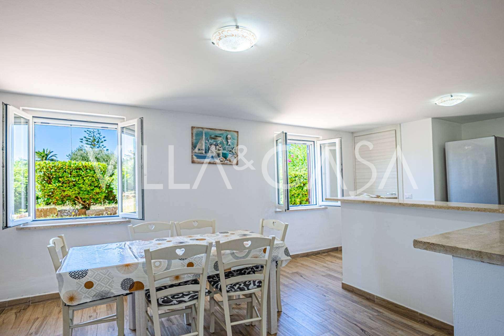 La résidence est complétée par des bâtiments annexes : un bâtiment séparé avec salle de bain, kitchenette, four à bois, buanderie et débarras, ainsi qu'un appartement indépendant d'environ 24 m² avec sa propre chambre, salle de bain et kitchenette. Il est orné d'une pergola en bois d'environ 100 m² avec un auvent, offrant une vue pittoresque sur la mer. L'appartement se distingue par son intimité et son excellente exposition au soleil, dispose de deux entrées avec portails automatiques, est en parfait état, entièrement meublé et équipé de climatiseurs et d'un système photovoltaïque.