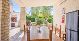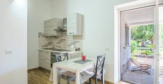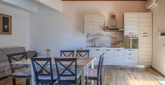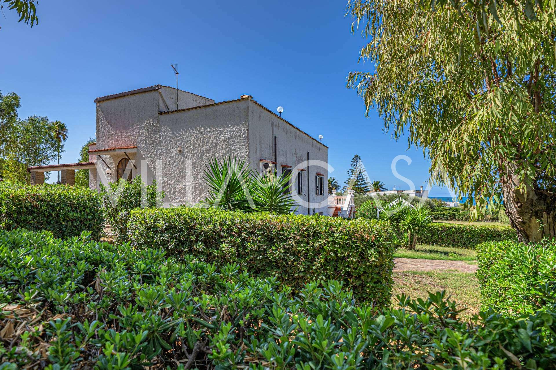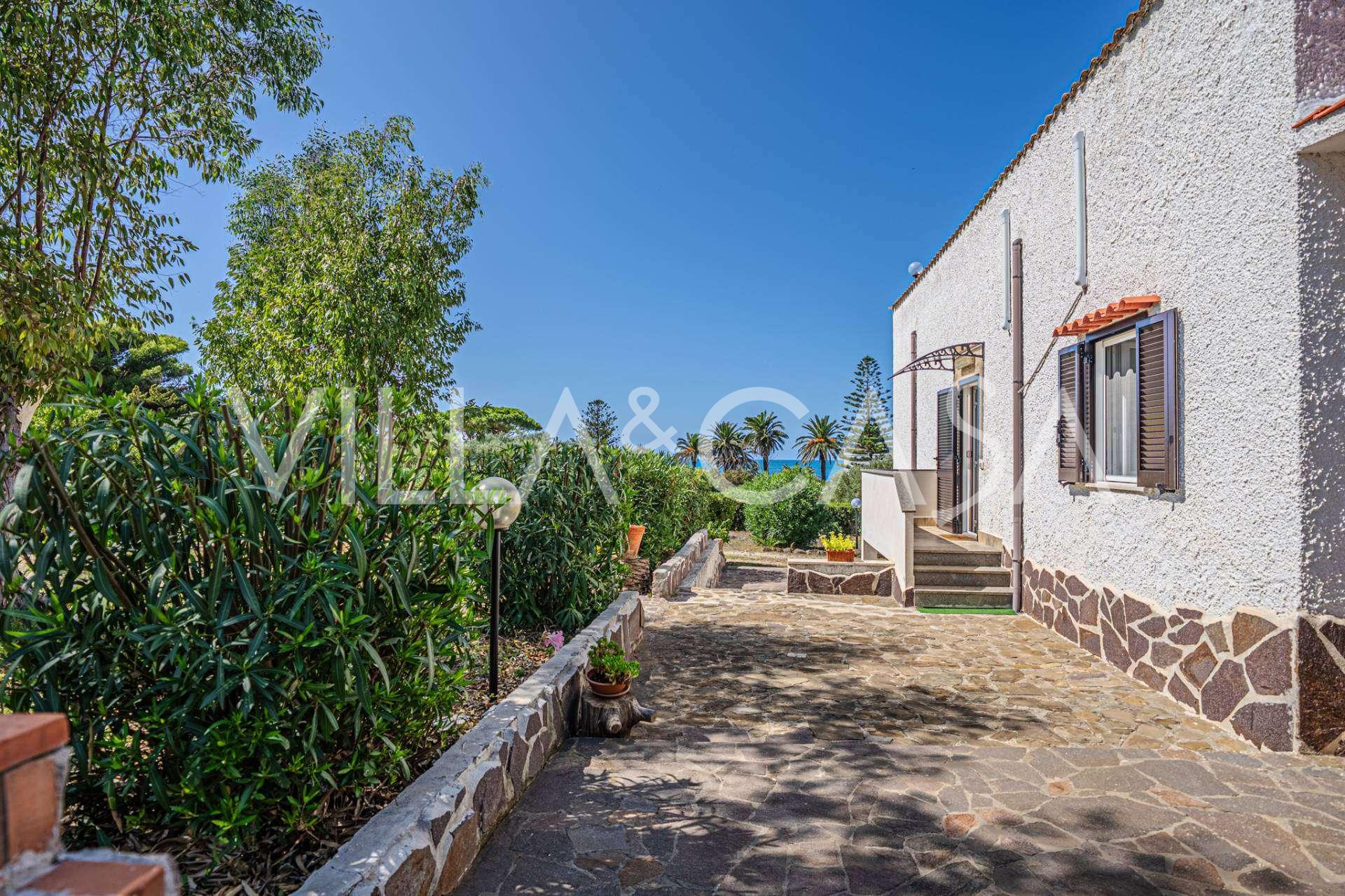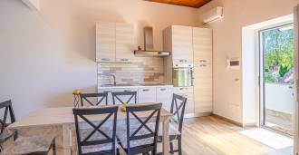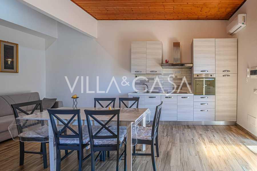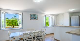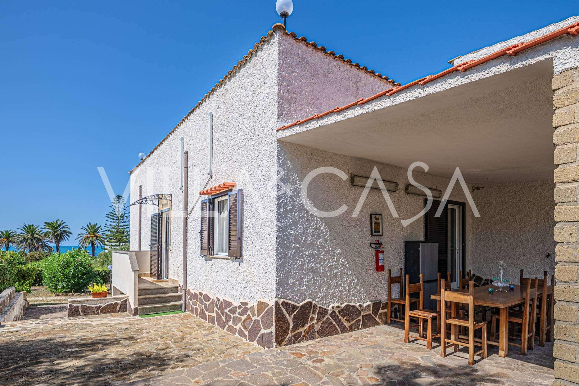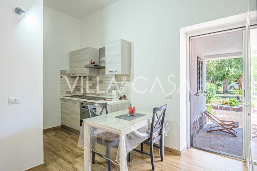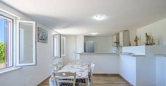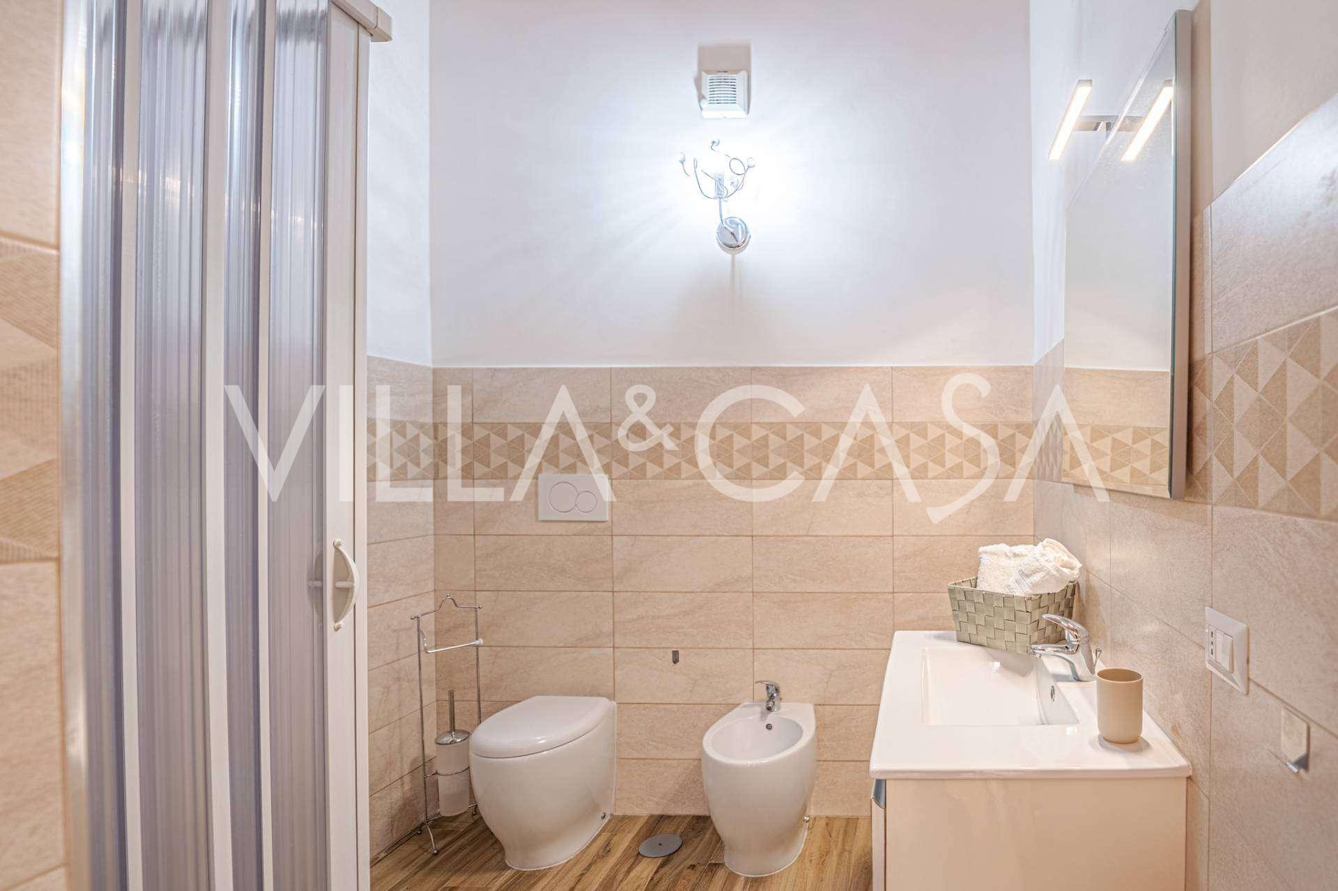 La résidence est complétée par des bâtiments annexes : un bâtiment séparé avec salle de bain, kitchenette, four à bois, buanderie et débarras, ainsi qu'un appartement indépendant d'environ 24 m² avec sa propre chambre, salle de bain et kitchenette. Il est orné d'une pergola en bois d'environ 100 m² avec un auvent, offrant une vue pittoresque sur la mer. L'appartement se distingue par son intimité et son excellente exposition au soleil, dispose de deux entrées avec portails automatiques, est en parfait état, entièrement meublé et équipé de climatiseurs et d'un système photovoltaïque.