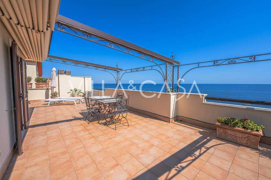 La résidence occupe une partie d'un duplex raffiné, tout en assurant une indépendance totale grâce à une entrée séparée, un spacieux jardin privé d'environ 800 mètres carrés et un accès privé direct à la plage, ce qui est rare sur la côte du Latium.
