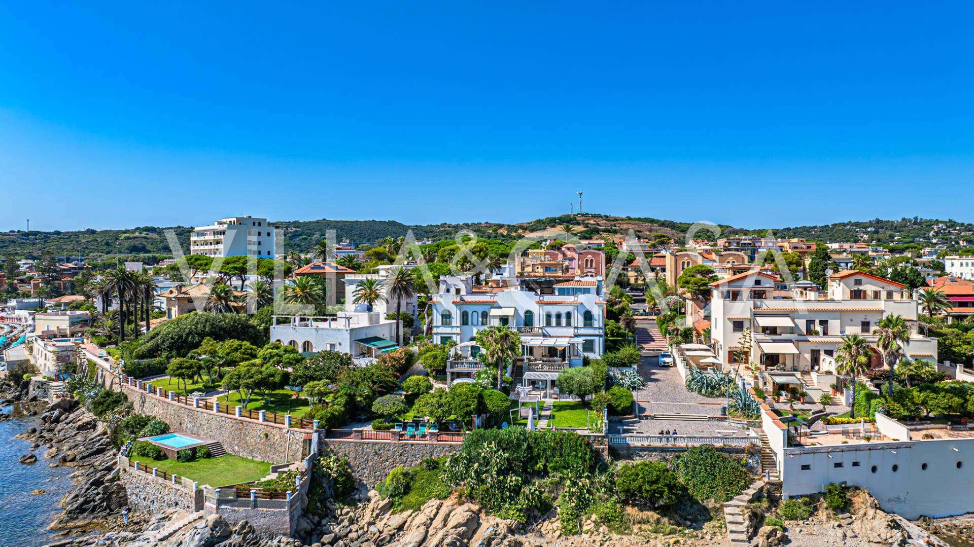 La villa dispose de cinq chambres climatisées, de cinq salles de bains raffinées, ainsi que d'une douche extérieure pratique. À l'extérieur, on trouve un jardin méditerranéen bien entretenu avec des pergolas électriques, des espaces de détente et des espaces de vie en plein air.