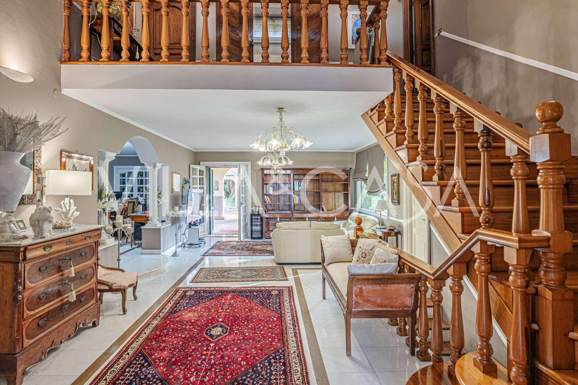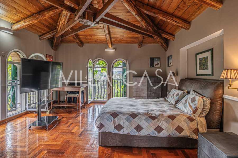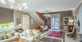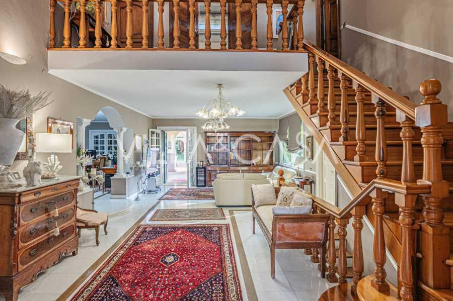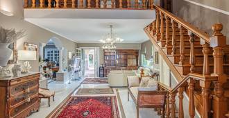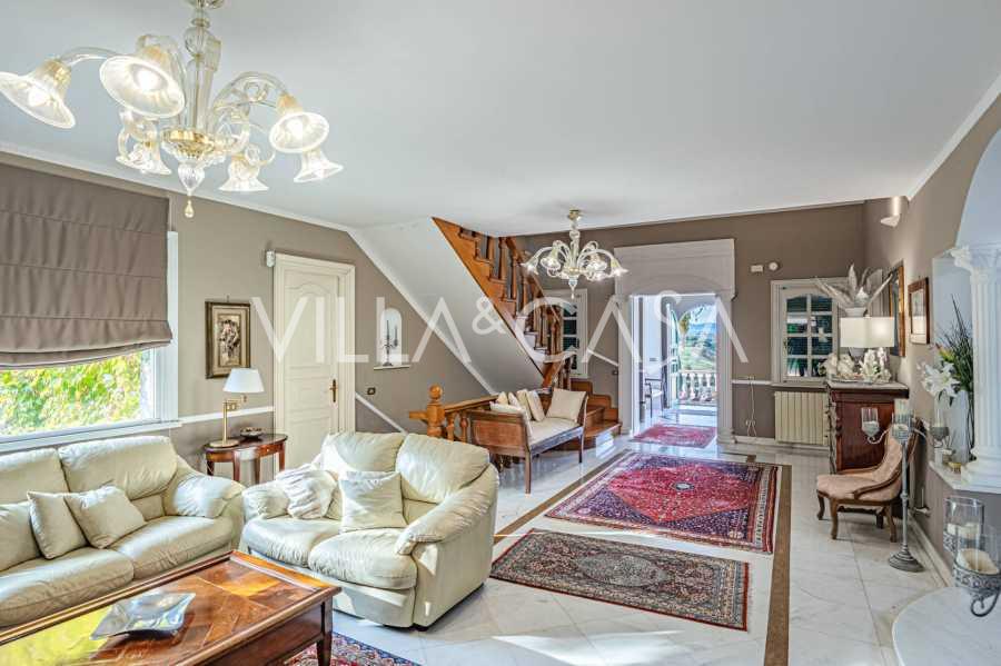 La villa s'élève sur quatre étages, impressionnant par son architecture bien pensée et le design élégant de ses intérieurs. Une majestueuse cour d'honneur avec des escaliers symétriques mène à l'entrée principale, ouvrant un espace où chaque élément est créé pour le confort et le plaisir. Au premier étage, les invités sont accueillis dans une zone de réception luxueuse avec l'atmosphère d'un palais privé : un salon spacieux avec cheminée, un bureau raffiné et une élégante chambre d'amis avec salle de bain créent une harmonie de confort et de noblesse.