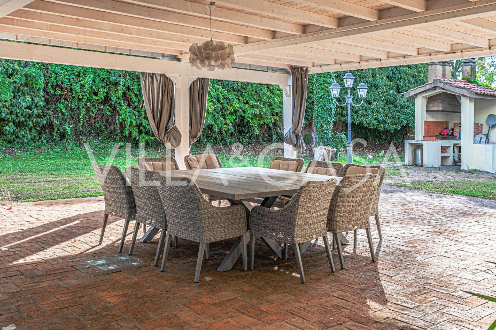 Dans la pittoresque vallée verdoyante d'Agro-Romano, entourée de collines, de demeures historiques et de cyprès parfumés, où le temps semble s'écouler lentement, se trouve une villa élégante de 840 m², incarnation du luxe raffiné et de l'art italien de profiter de la vie. Entourée d'un parc privé de 10 000 m², elle est un véritable oasis de paix et d'intimité, à seulement quelques minutes du centre historique de Rome — une ville devenue le symbole de la beauté éternelle et du luxe.
