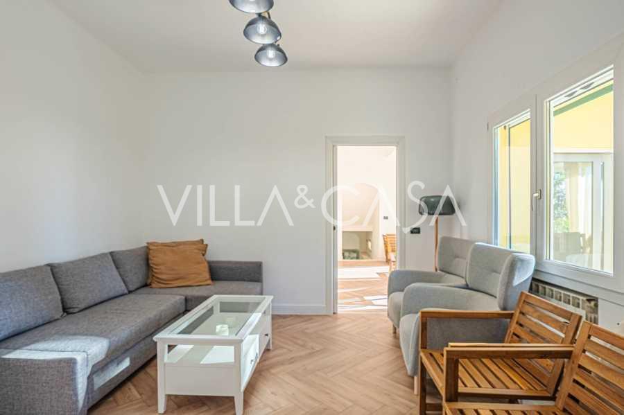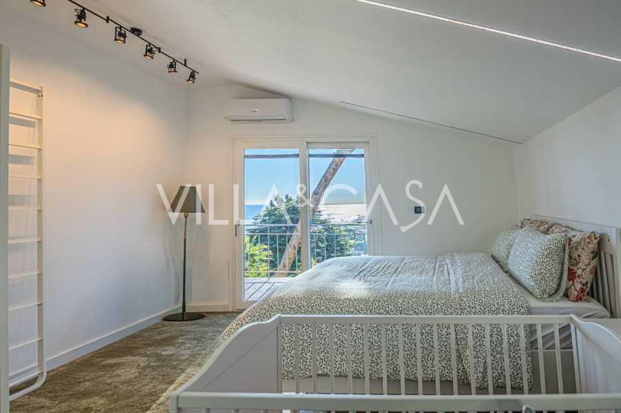 L'étage supérieur est destiné à la zone privée avec deux chambres spacieuses, chacune s'ouvrant sur une terrasse offrant une vue panoramique à couper le souffle. Les levers et couchers de soleil se reflétant dans la mer ligurienne créent une atmosphère de parfaite harmonie et de romantisme.