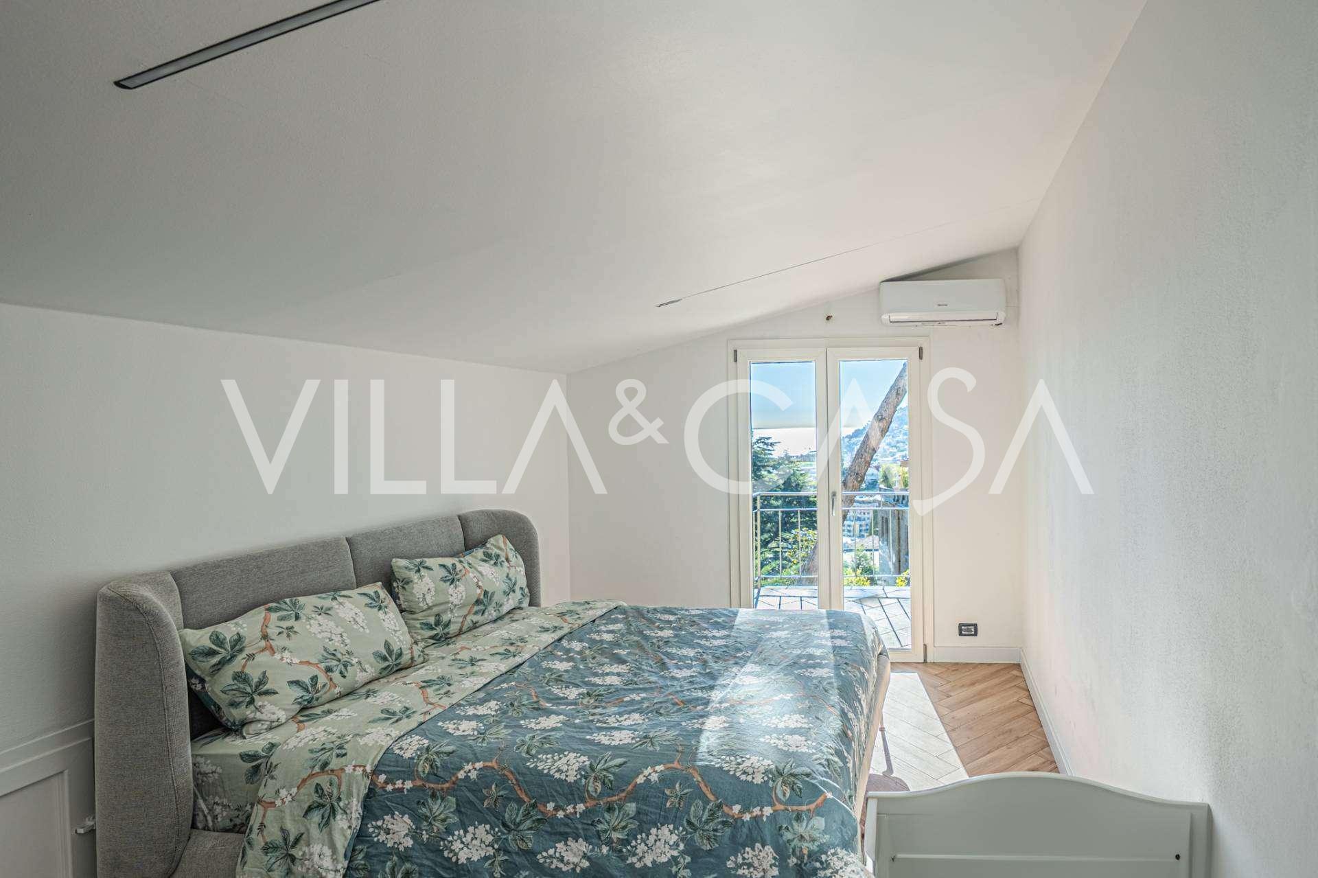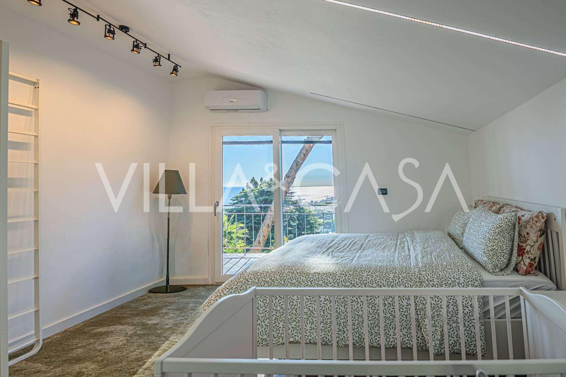 L'étage supérieur est une zone privée avec deux chambres spacieuses, chacune donnant sur une terrasse avec une vue panoramique à couper le souffle. Les levers et couchers de soleil, se reflétant dans les eaux de la mer ligure, créent une atmosphère de sérénité et de romantisme.