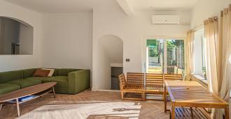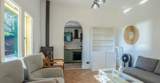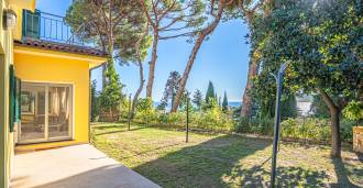 Le terrain de la villa est entouré de verdure : un jardin bien entretenu avec des plantes décoratives et des fleurs, une zone de détente en plein air, ainsi qu'un parking privé pour trois voitures. Une rénovation récente a ajouté modernité et fraîcheur à la maison, tout en conservant l'élégance méditerranéenne.