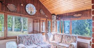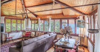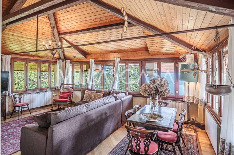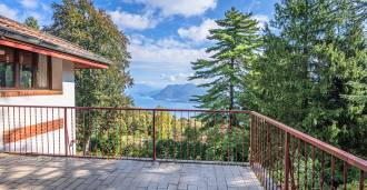 Sur un parc bien entretenu d'environ 6000 m², descendant doucement vers l'eau, s'élève une élégante villa entourée d'arbres centenaires tels que des séquoias majestueux, des cèdres du Liban, ainsi qu'une riche collection d'azalées, de rhododendrons et d'hortensias. La propriété comprend la maison principale et une charmante maison d'hôtes (dépendance) construite dans le style d'un chalet alpin.