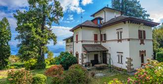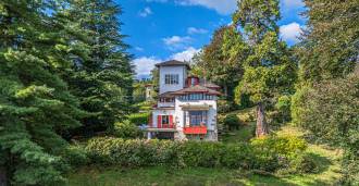 Une somptueuse villa de style Liberty avec vue sur le lac Majeur est proposée à la vente. Cette villa majestueuse est située sur la rive pittoresque du lac, dans le prestigieux quartier d'Alpino, une station balnéaire prisée de Stresa. Chef-d'œuvre architectural de la fin du XIXe siècle, conçu par le célèbre architecte Boffi, elle est l'une des principales œuvres de l'époque Belle Époque sur le lac Majeur.