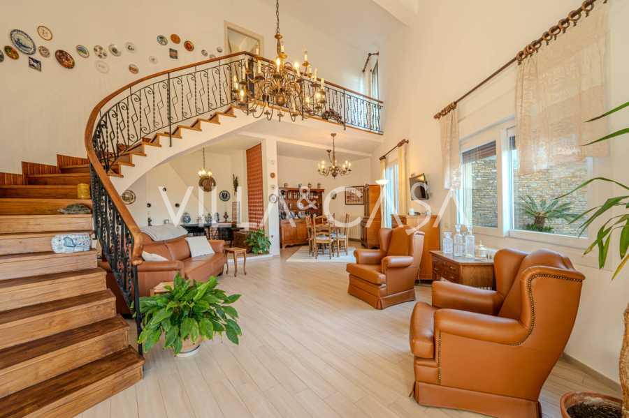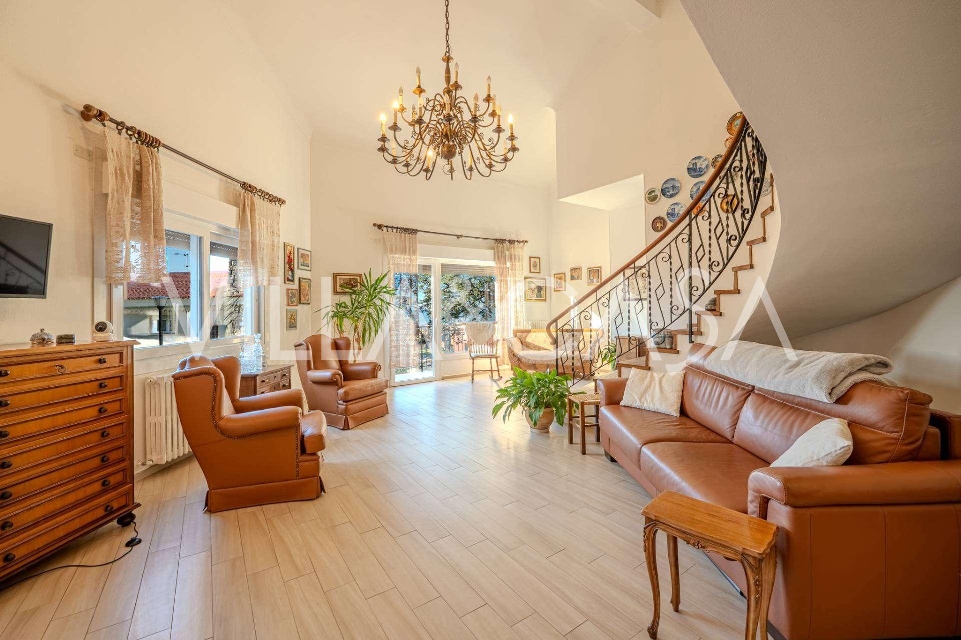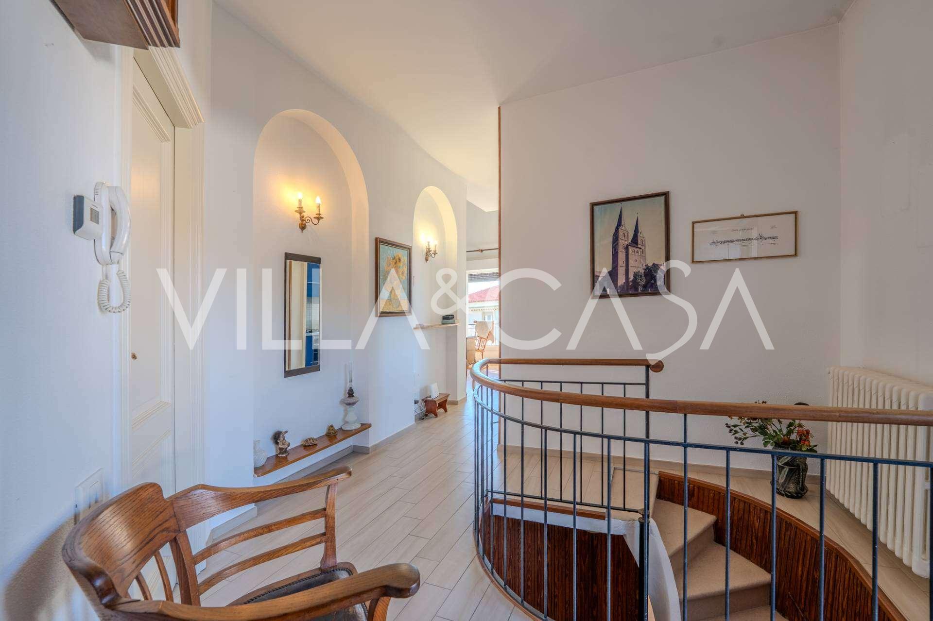 À Vallecrosia, dans un quartier ensoleillé, à seulement 15 minutes à pied de la mer, une spacieuse villa d'une superficie totale d'environ 251 m² est proposée à la vente. La maison a trois étages et se compose de deux parties indépendantes, qui sont actuellement réunies en un seul espace de vie.