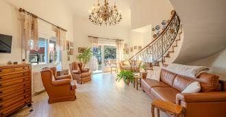 Le prix comprend un garage. Jardin d'environ 300 m². À côté de la maison, il y a une petite construction d'environ 30 m², au prix de 65 000 euros, qui peut être utilisée comme logement à louer. La villa est en excellent état, avec chauffage autonome. Il est également possible d'acheter séparément un garage de 60 m² pour 120 000 euros.