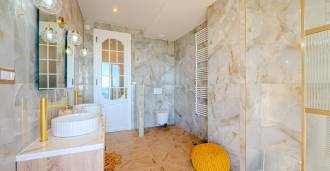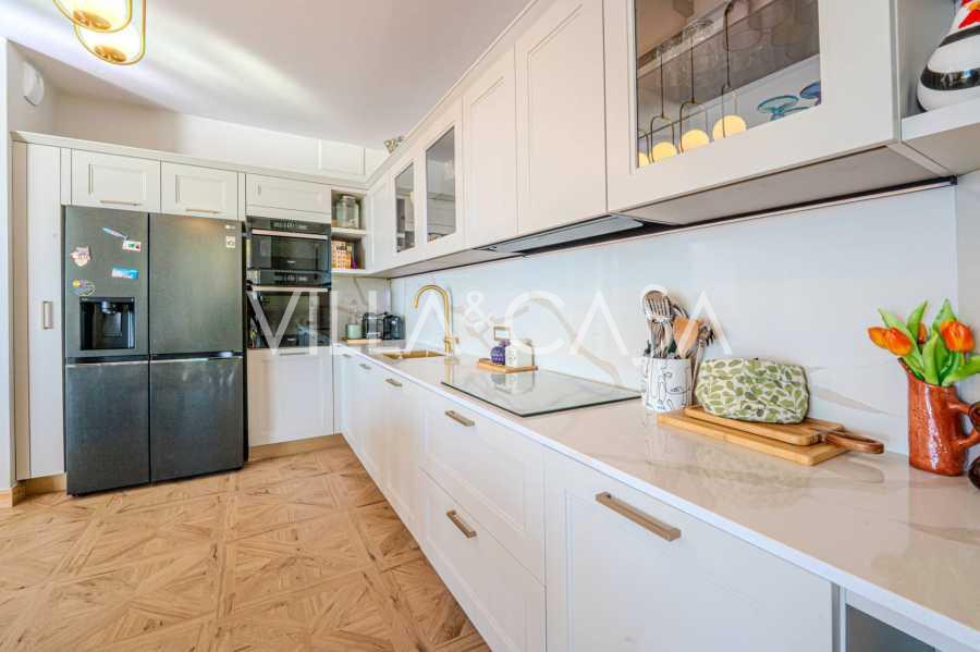 La disposition comprend trois chambres, dont deux ont un accès direct au balcon avec vue sur la mer, ainsi que trois salles de bains, finies avec des matériaux de haute qualité.
