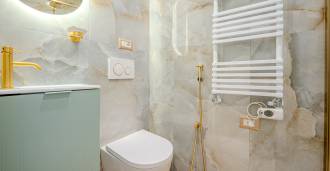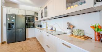 L'appartement a été entièrement rénové : les systèmes de plomberie et d'électricité ont été remplacés. L'intérieur est équipé de nouveaux meubles design et d'appareils modernes de classe premium, des climatiseurs sont installés dans chaque pièce, et il y a aussi une alarme et un chauffage individuel.