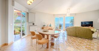 L'intérieur de l'appartement combine confort moderne et atmosphère élégante et cosy. Un hall spacieux mène à un splendide salon avec cuisine ouverte, offrant une vue à couper le souffle sur la mer. Depuis le salon, il y a accès à deux balcons où l'on peut profiter de la brise marine et de la vue sur la côte ligurienne.