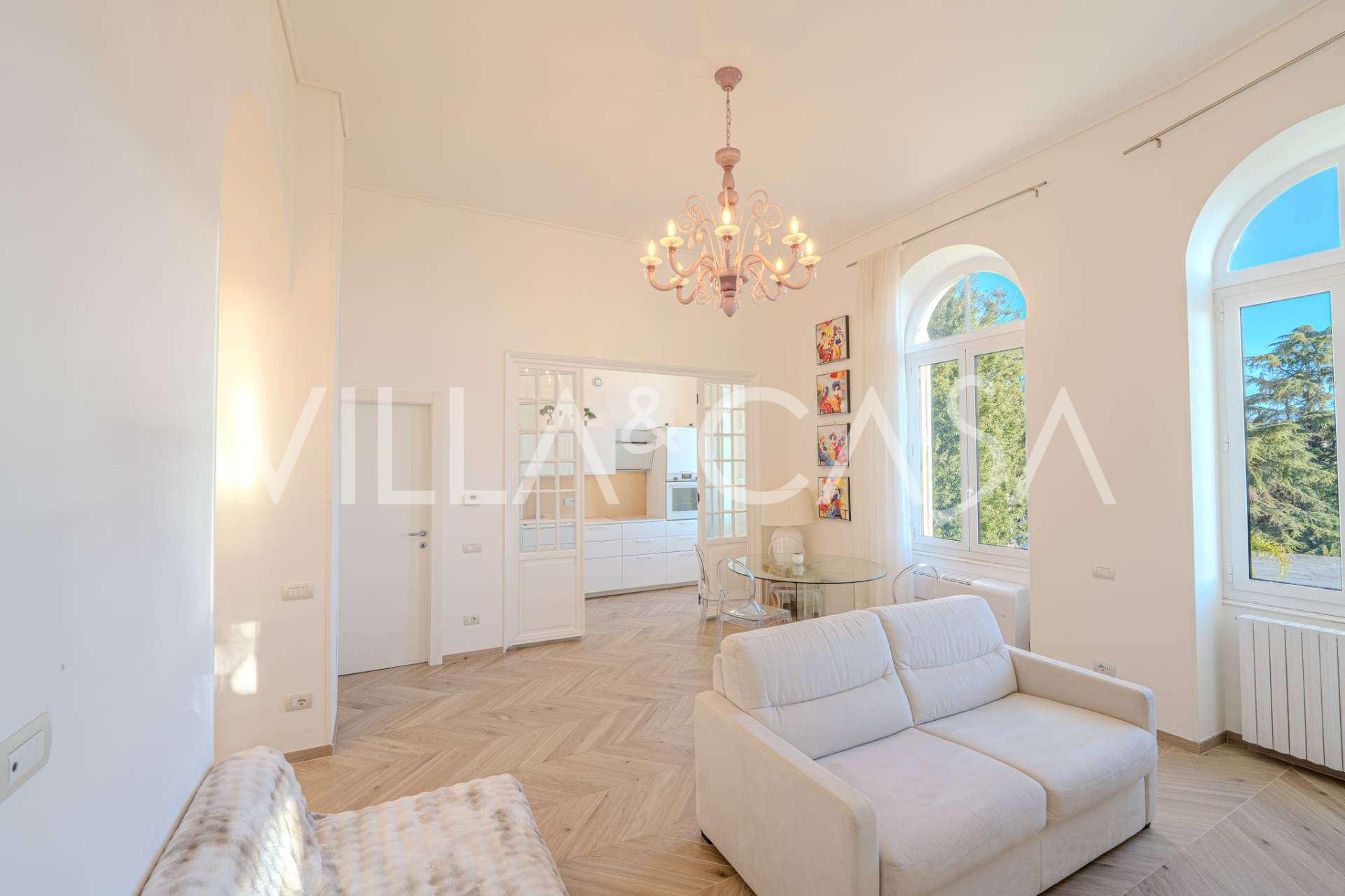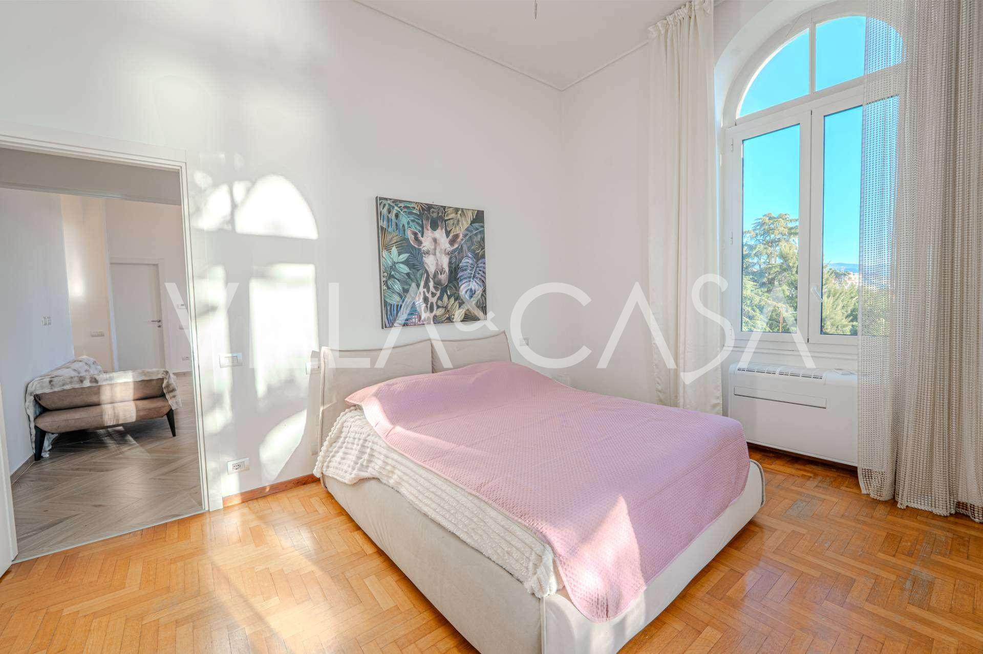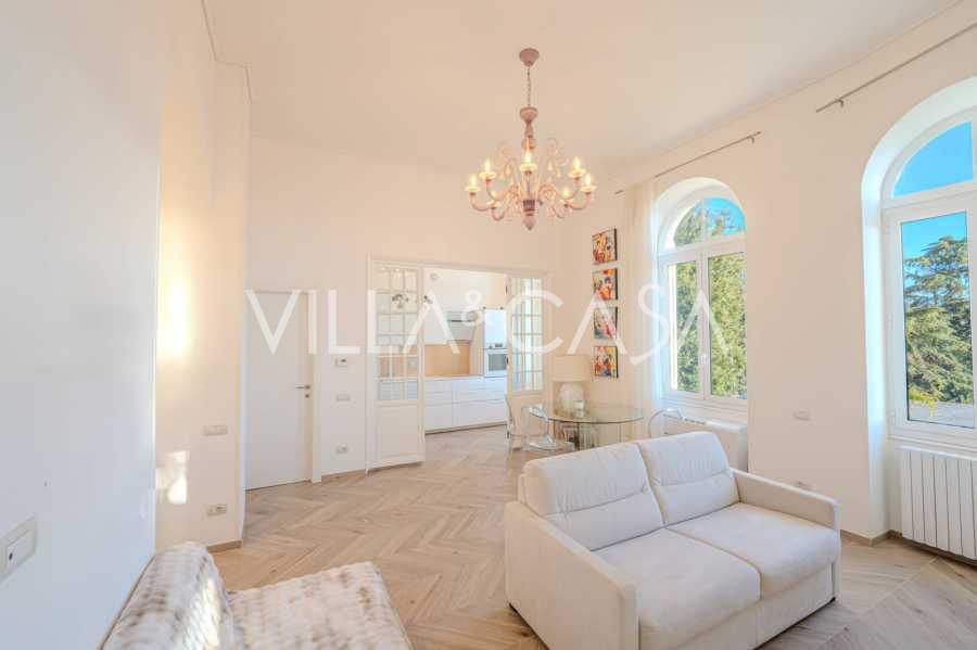 À Sanremo, un appartement de 2 pièces de 73 m² avec vue sur la mer est proposé à la location. Situé au deuxième étage avec ascenseur, il comprend un salon, une chambre avec balcon, une cuisine et une salle de bain. L'appartement est en parfait état : fenêtres neuves, climatisation, parquet et chauffage autonome. Entièrement meublé. Le prix inclut une place de parking dans le garage. Le complexe est fermé et calme, avec piscine, jardin, aire de repos et barbecue. Le centre-ville et la mer sont à seulement 7 minutes à pied.