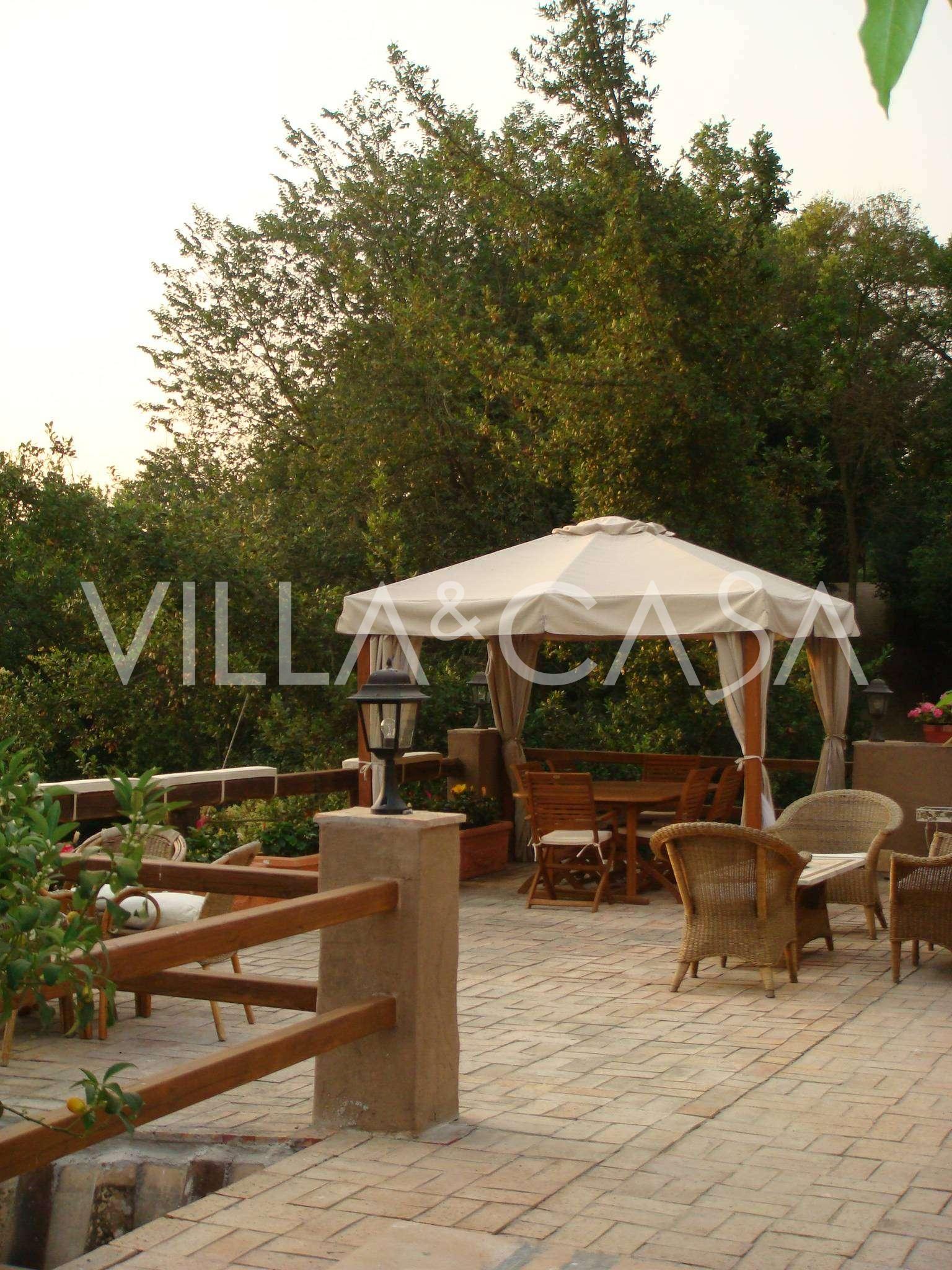 Garage pour 4 voitures, chauffage autonome, système de climatisation, villa proposée entièrement meublée.