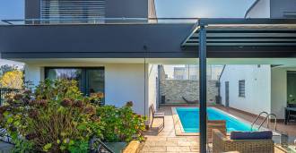 La propriété dispose d'un jardin bien entretenu, d'une grande piscine extérieure, d'un garage et de 4 places de stationnement couvertes, d'une zone barbecue et de plusieurs terrasses pour se détendre en plein air, dont une couverte pour profiter même par mauvais temps.